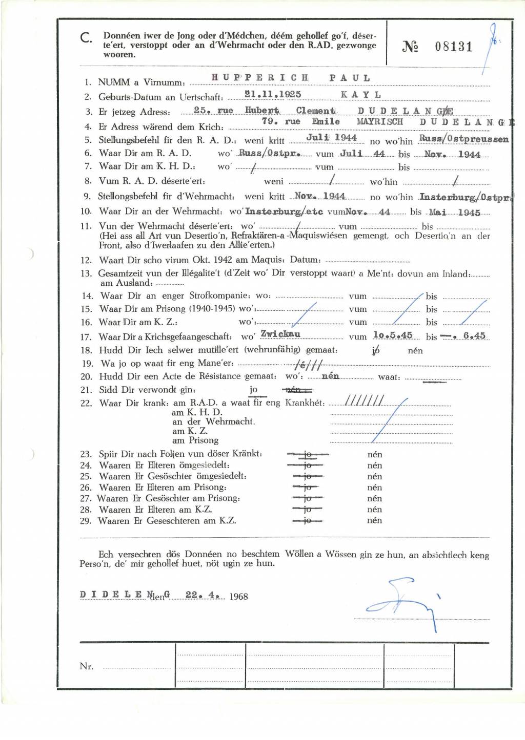 Nom, prénom, nom pendant l'occupation