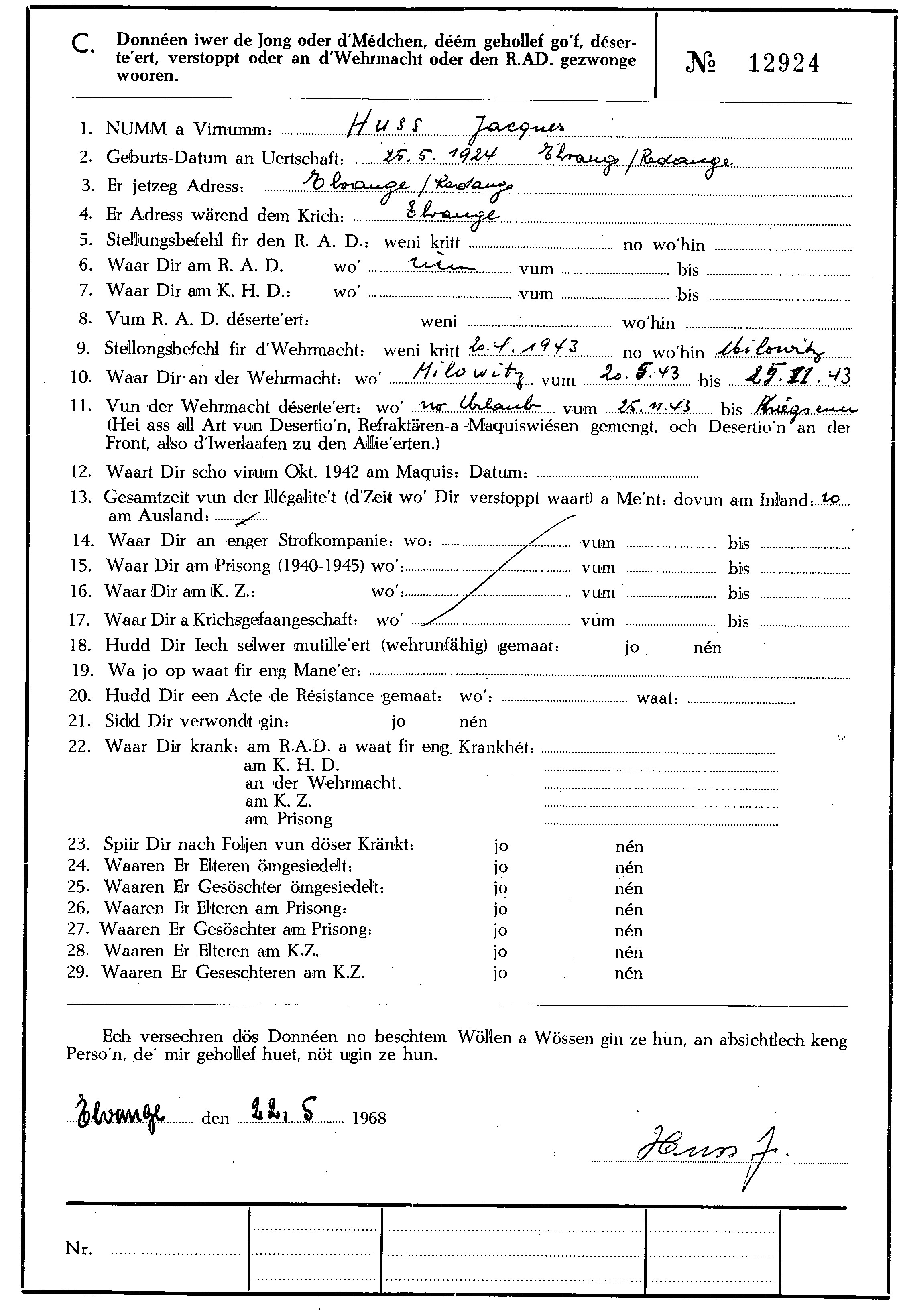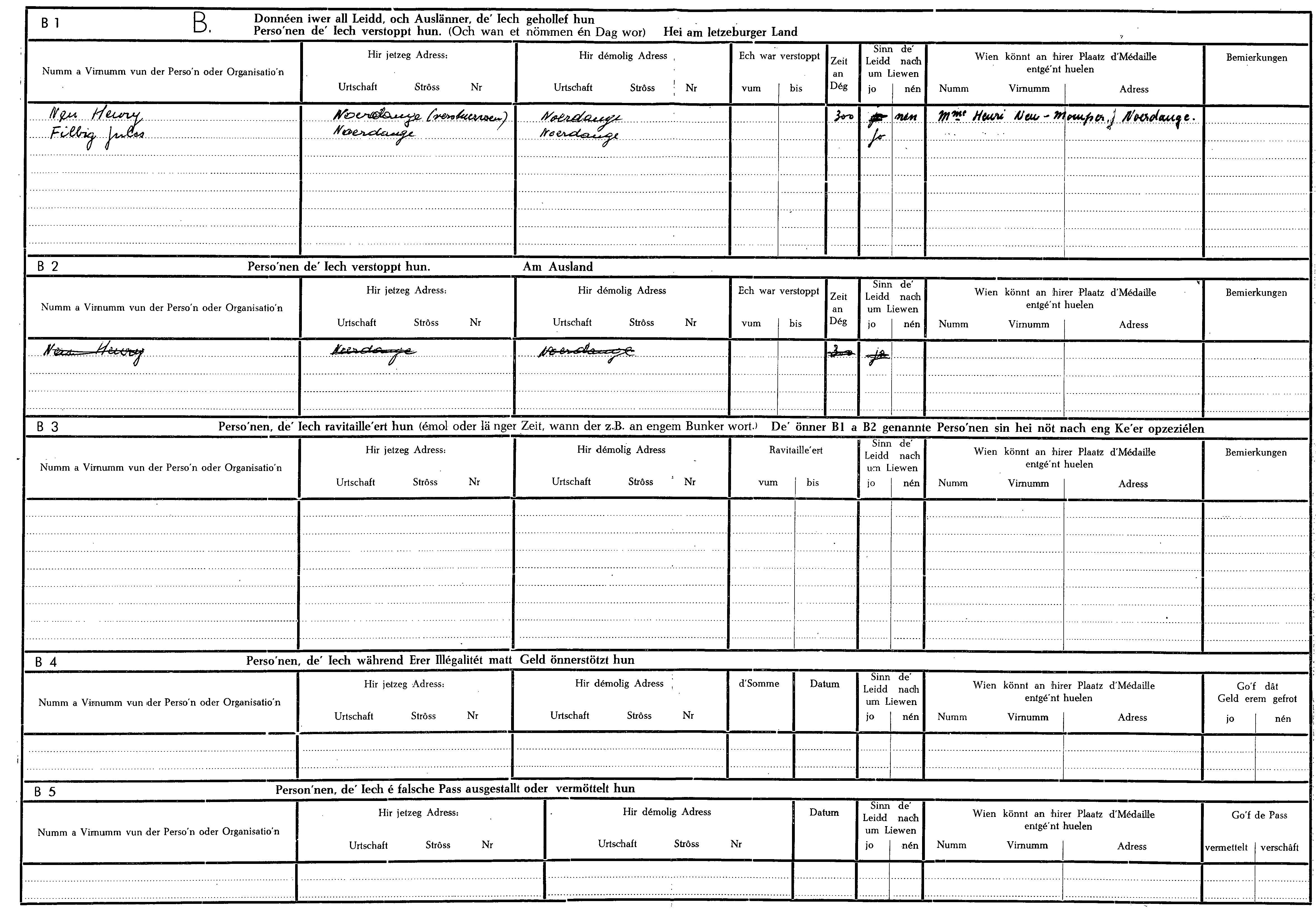 Nom, prénom, nom pendant l'occupation
