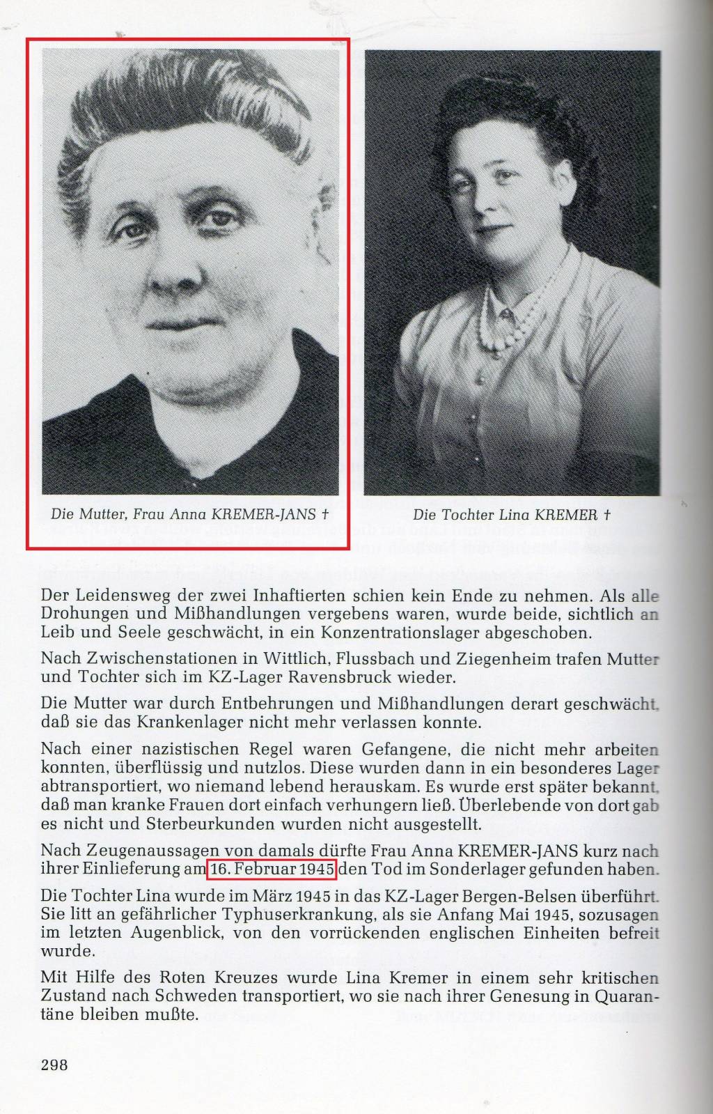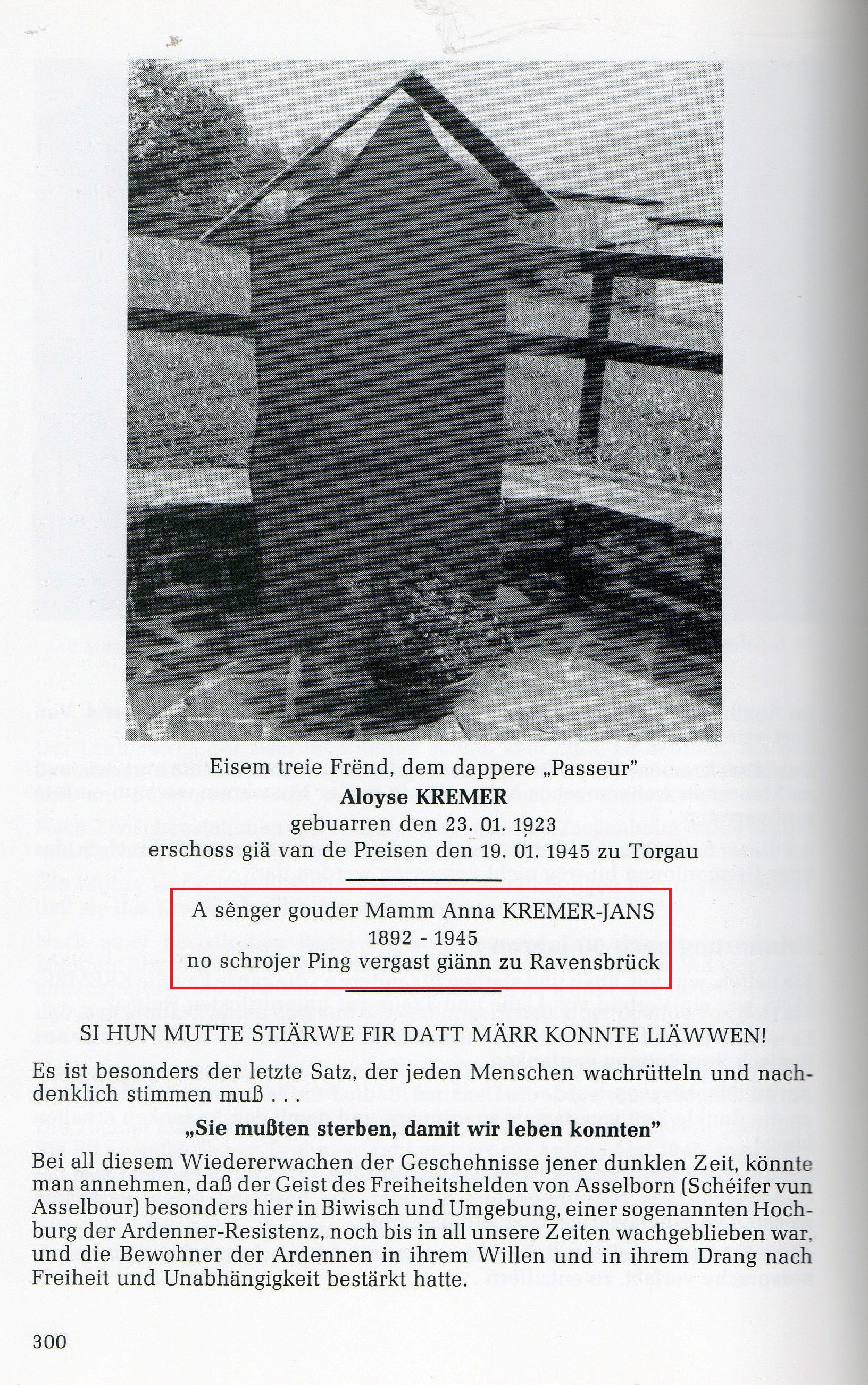 Jans Anna ep Kremer 01081892 Dieffelt Boevange KZ Ravensbruck 16021945 KREMER Nicolas Aus dunkler Zeit 1993