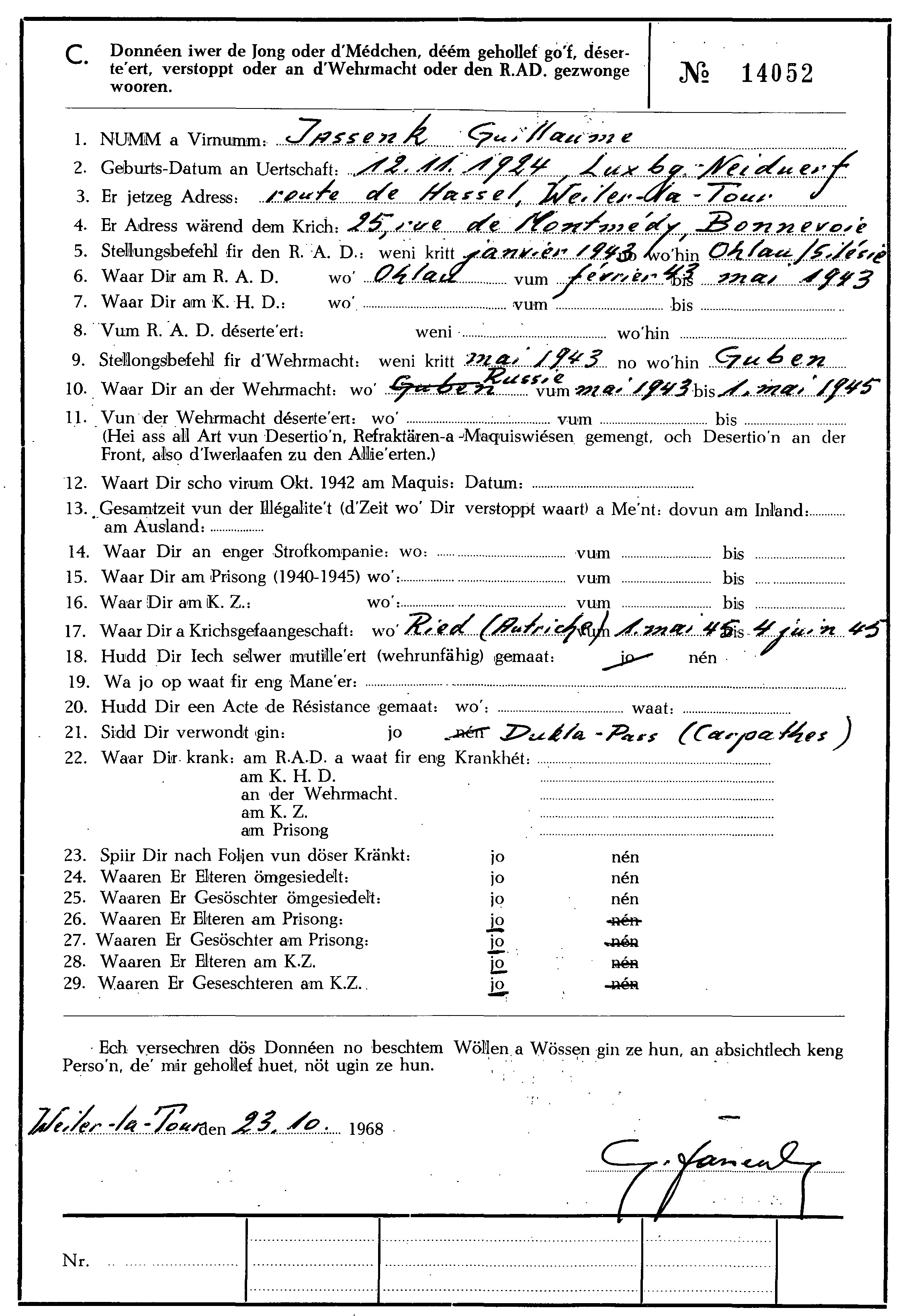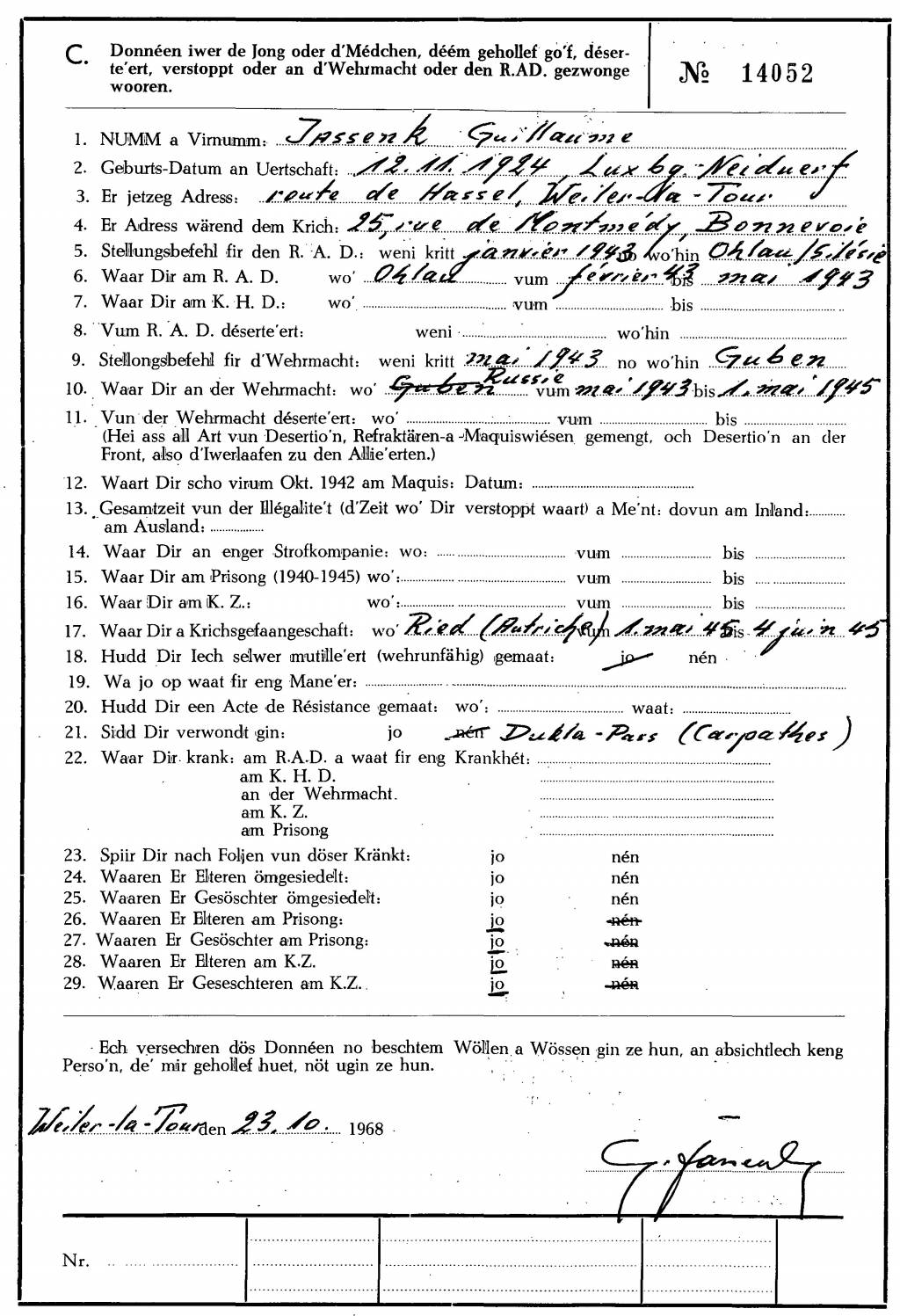 Nom, prénom, nom pendant l'occupation