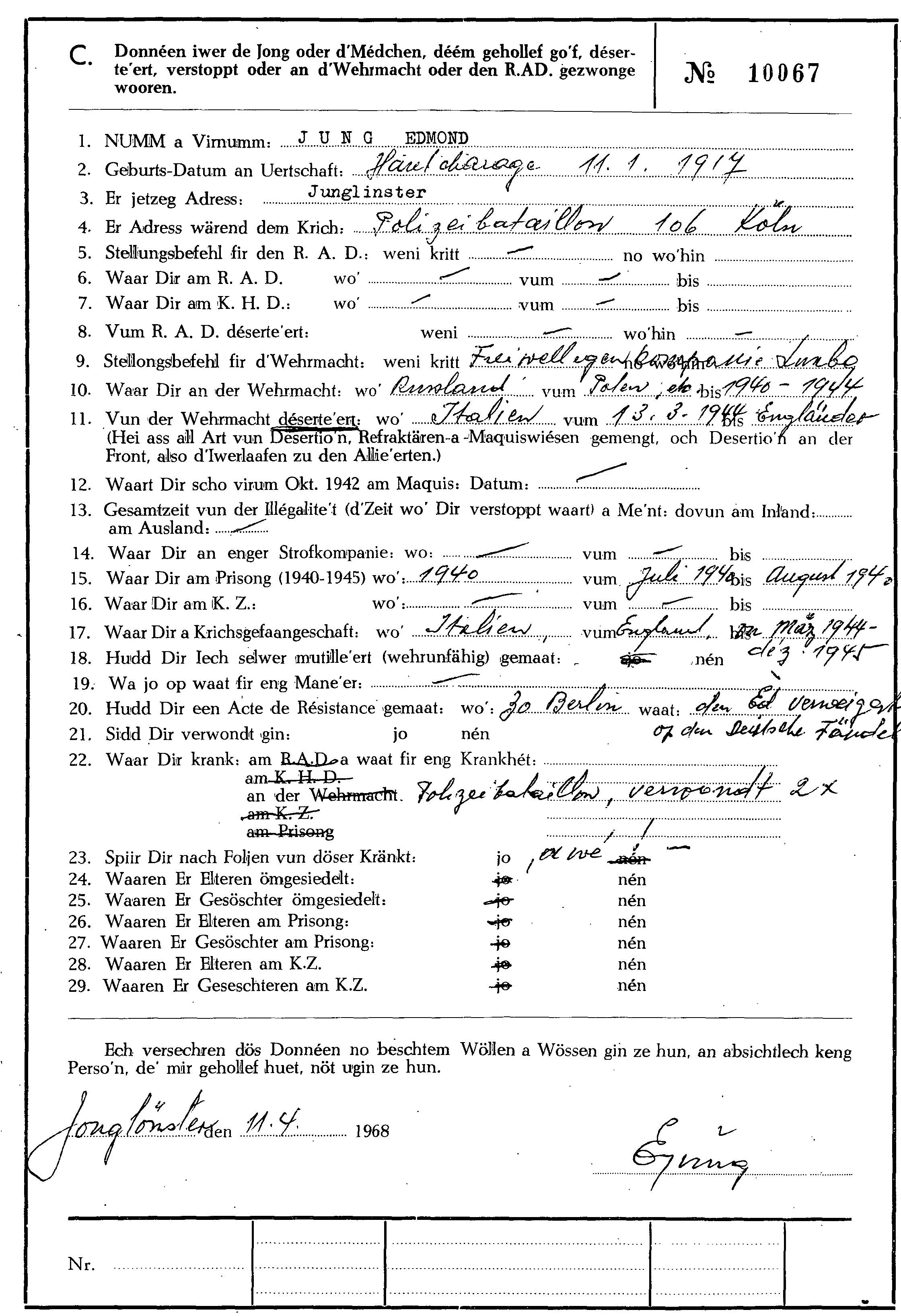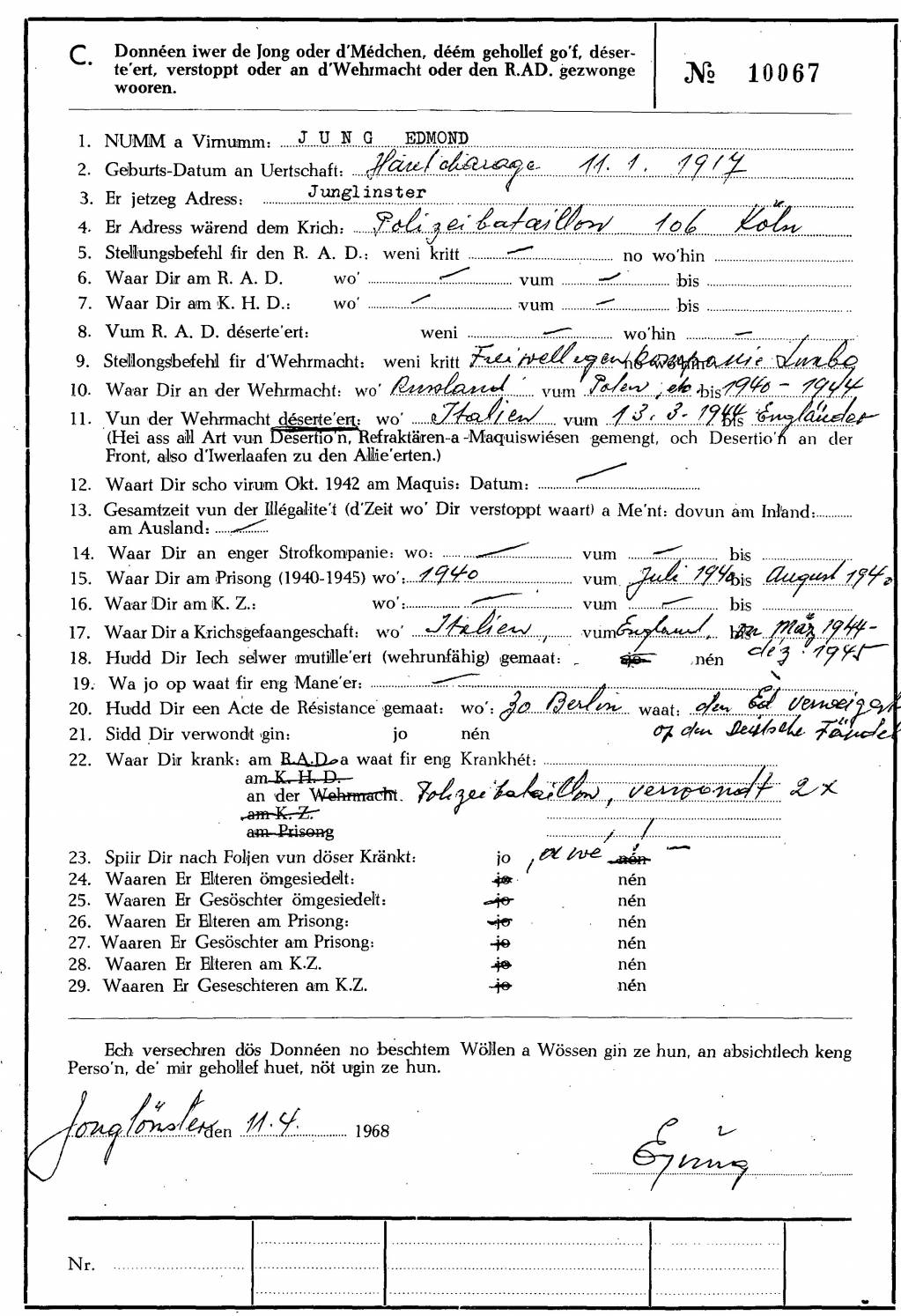 Nom, prénom, nom pendant l'occupation