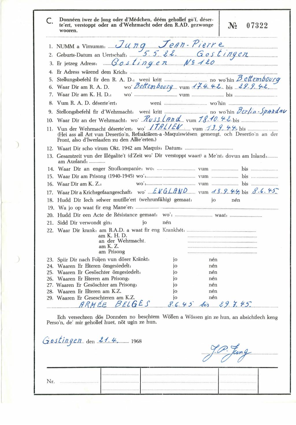Nom, prénom, nom pendant l'occupation