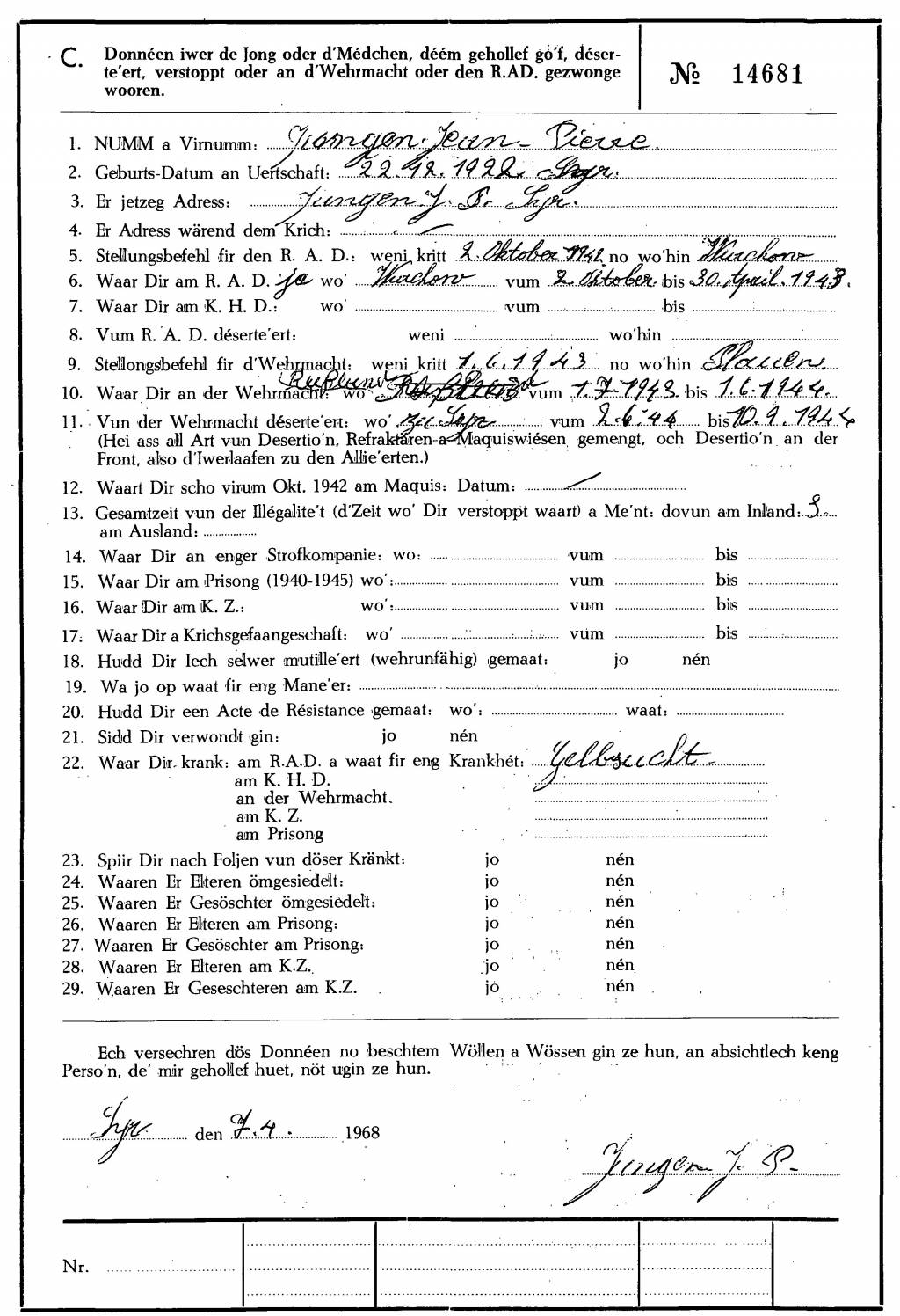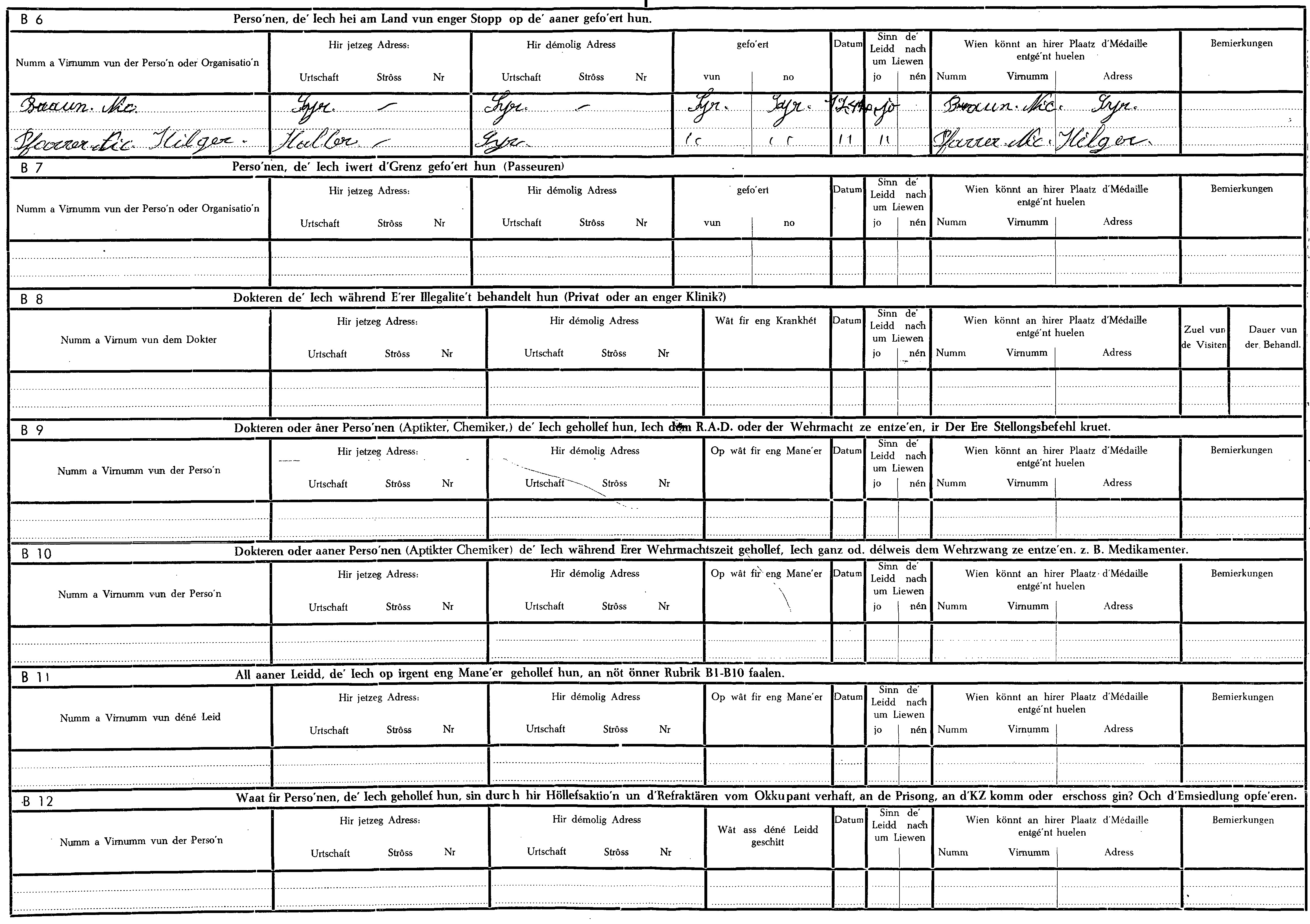 Nom, prénom, nom pendant l'occupation