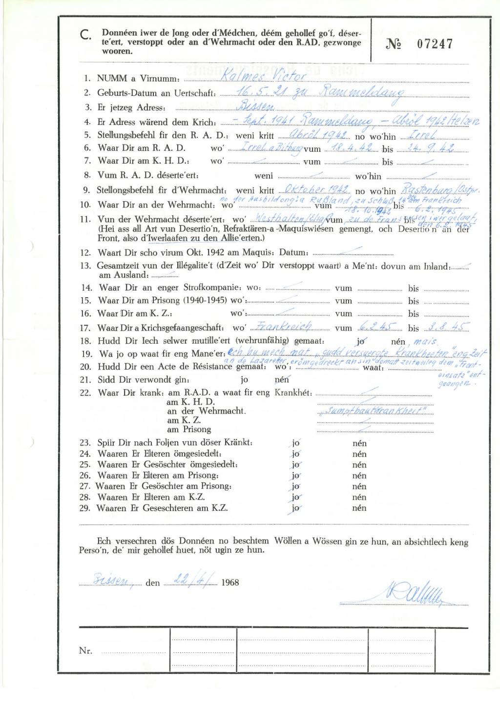 Nom, prénom, nom pendant l'occupation