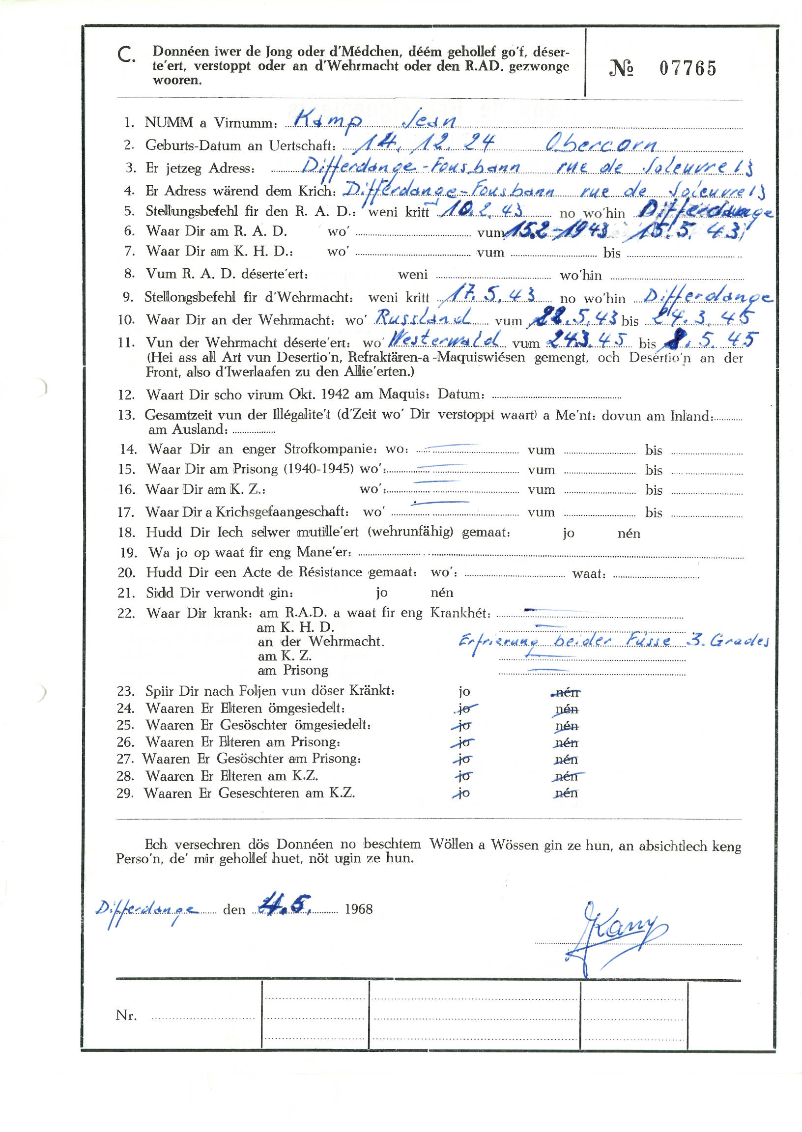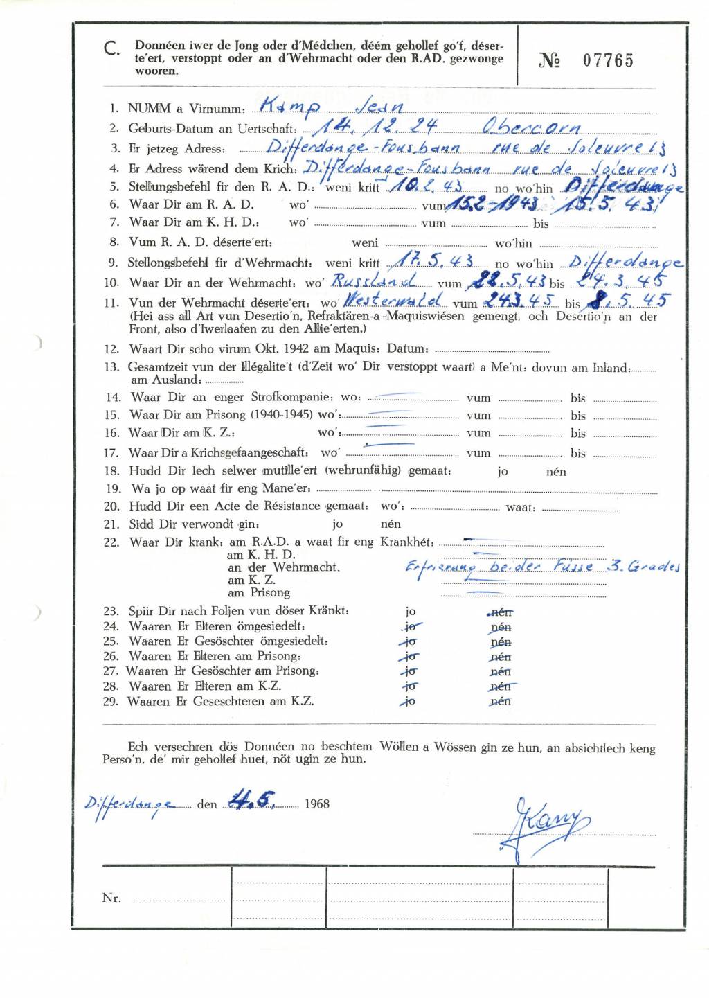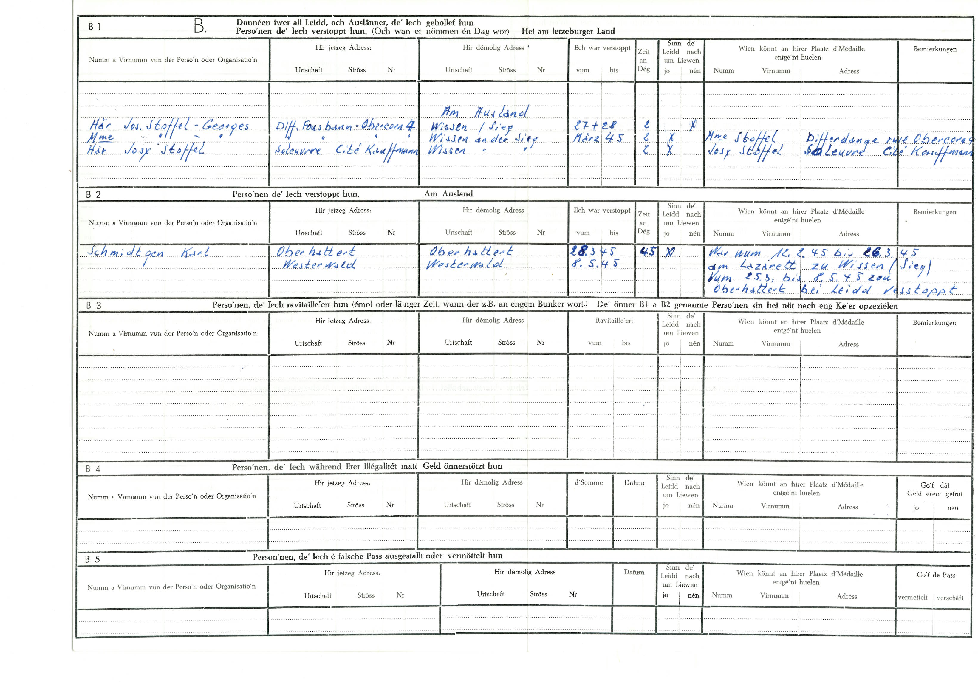 Nom, prénom, nom pendant l'occupation