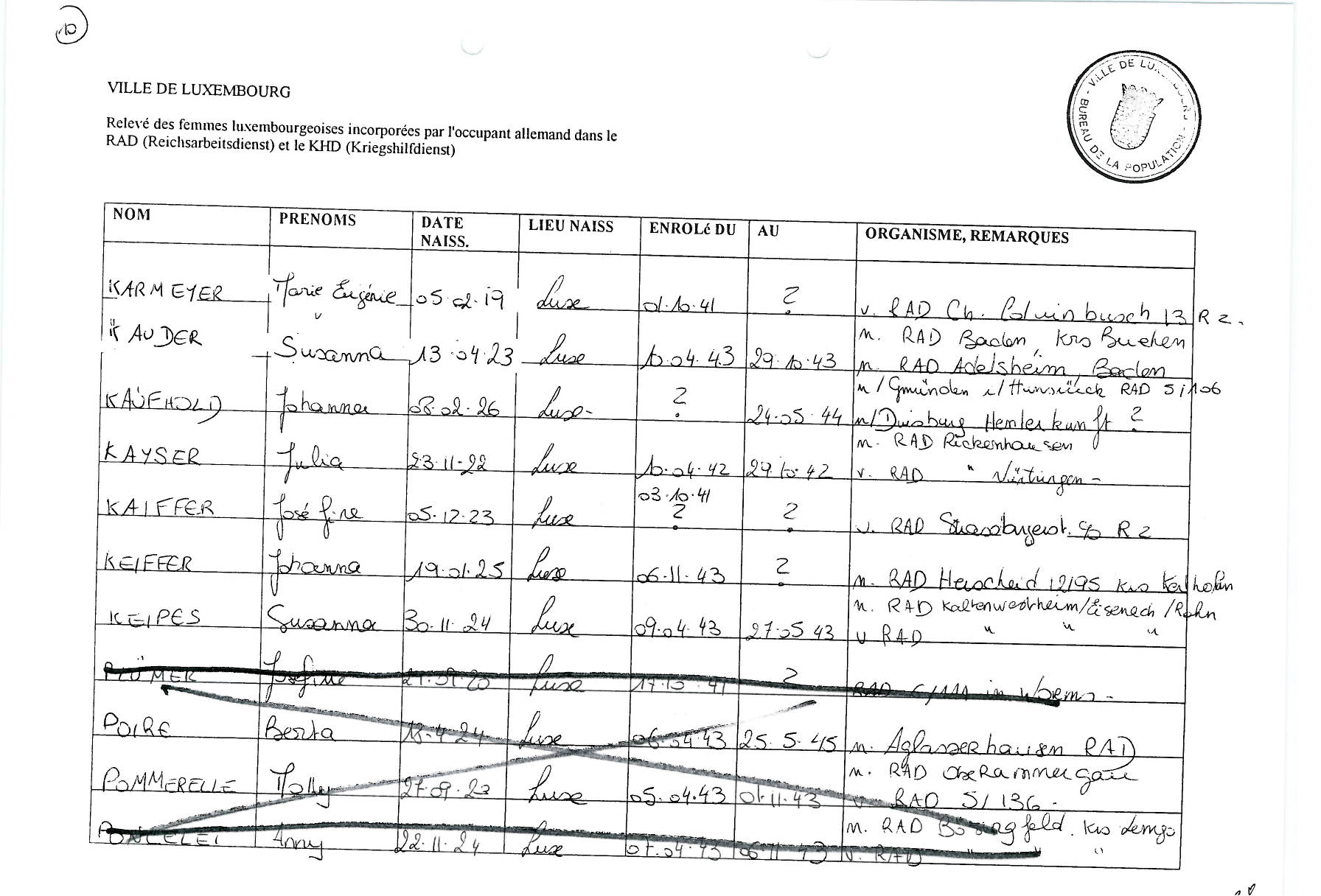 Nom, prénom, nom pendant l'occupation