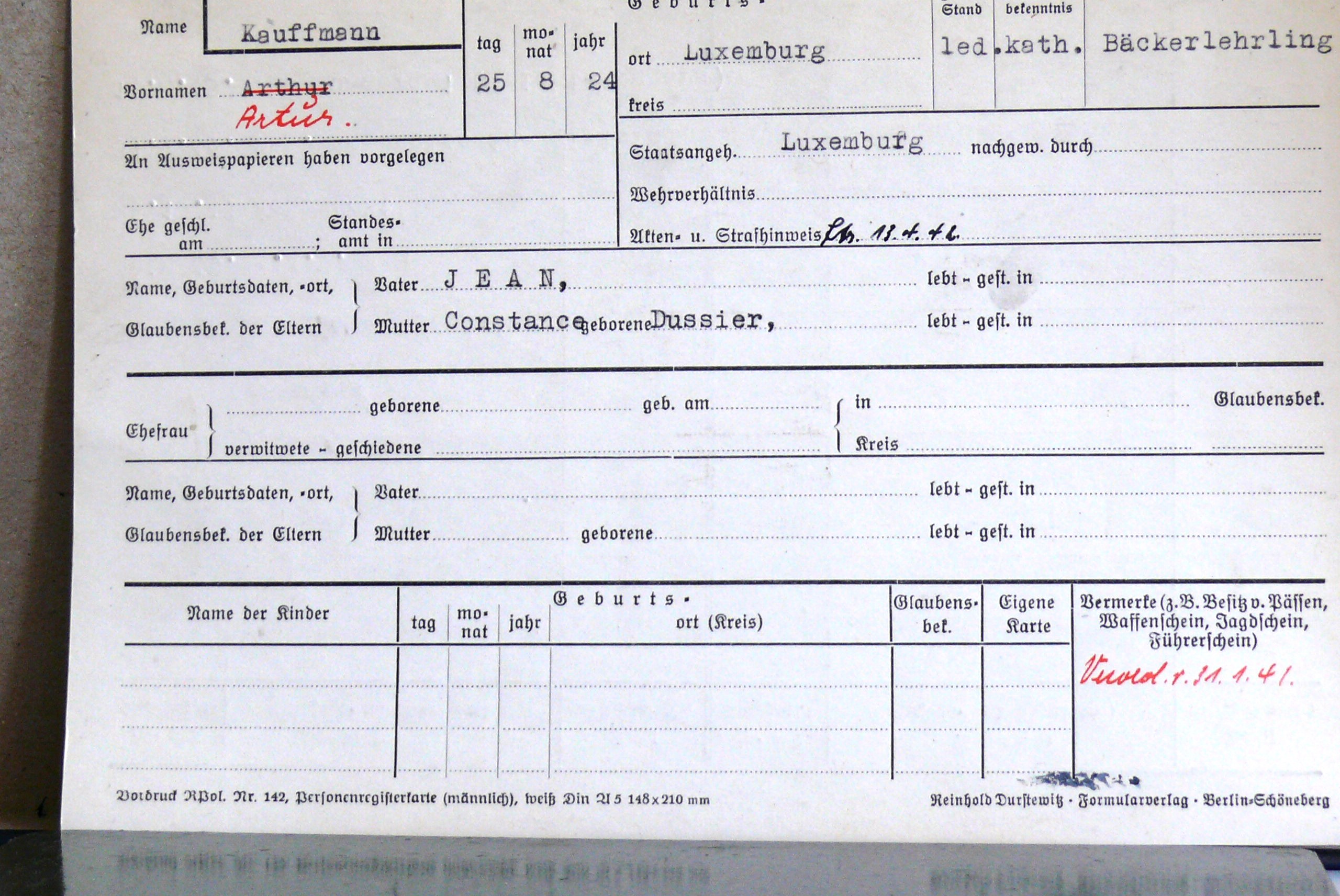 Nom, prénom, nom pendant l'occupation