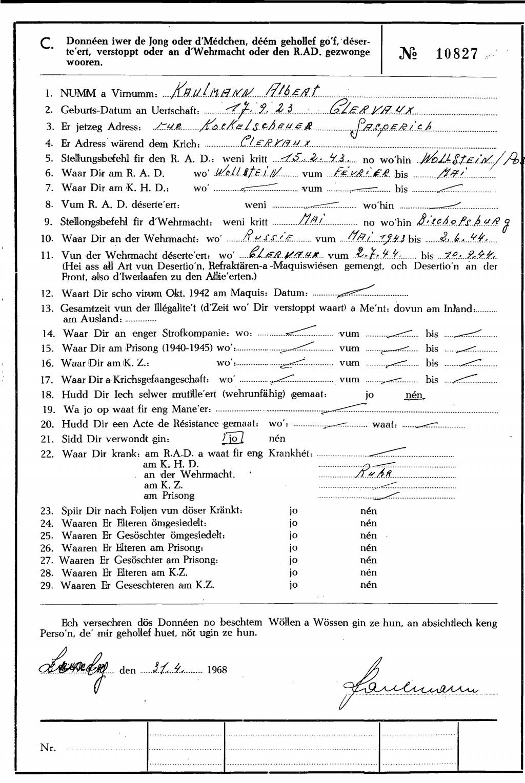 Nom, prénom, nom pendant l'occupation