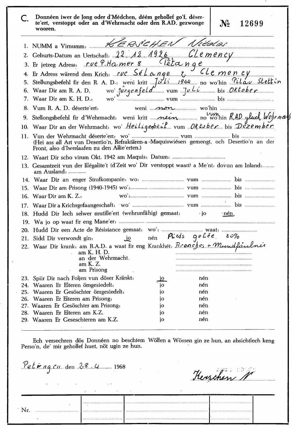 Nom, prénom, nom pendant l'occupation