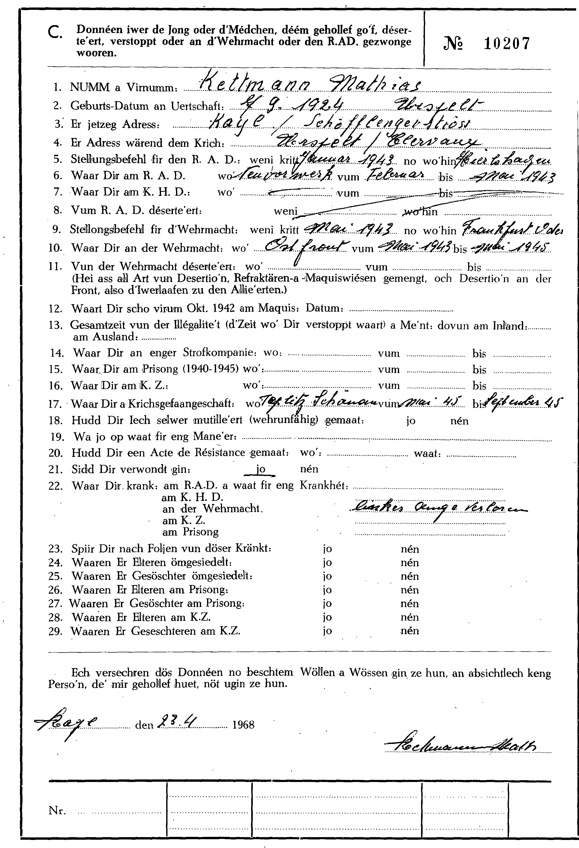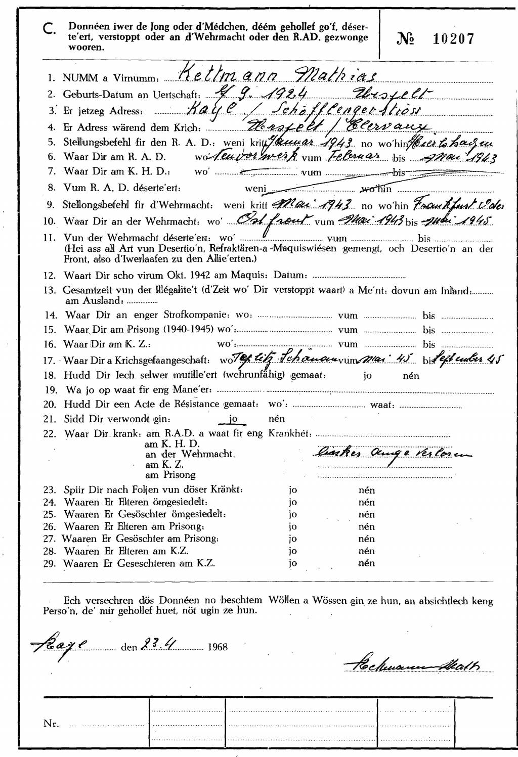 Nom, prénom, nom pendant l'occupation