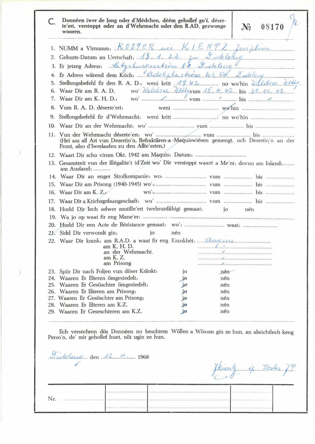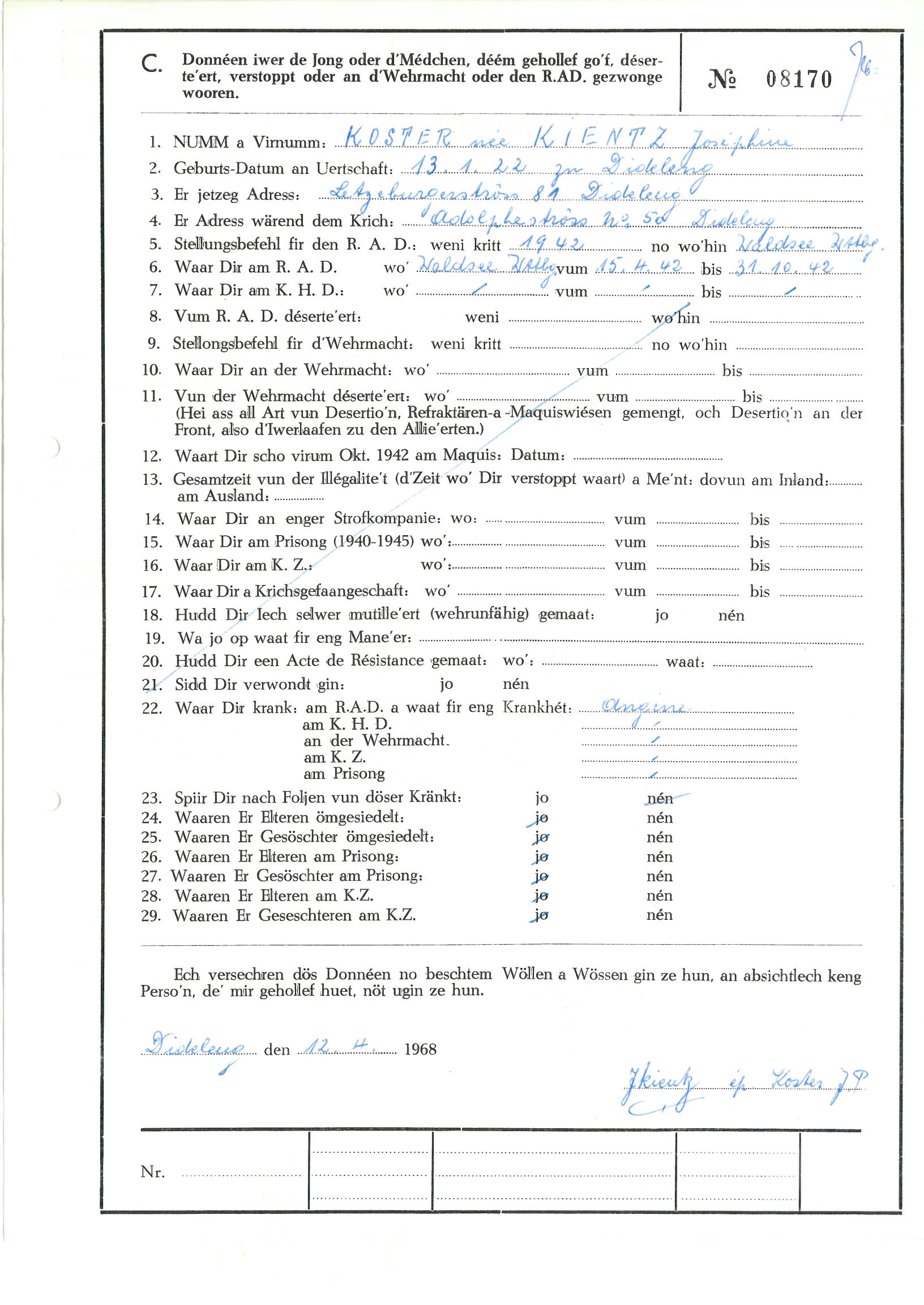Kientz épouse Koster Joséphine
