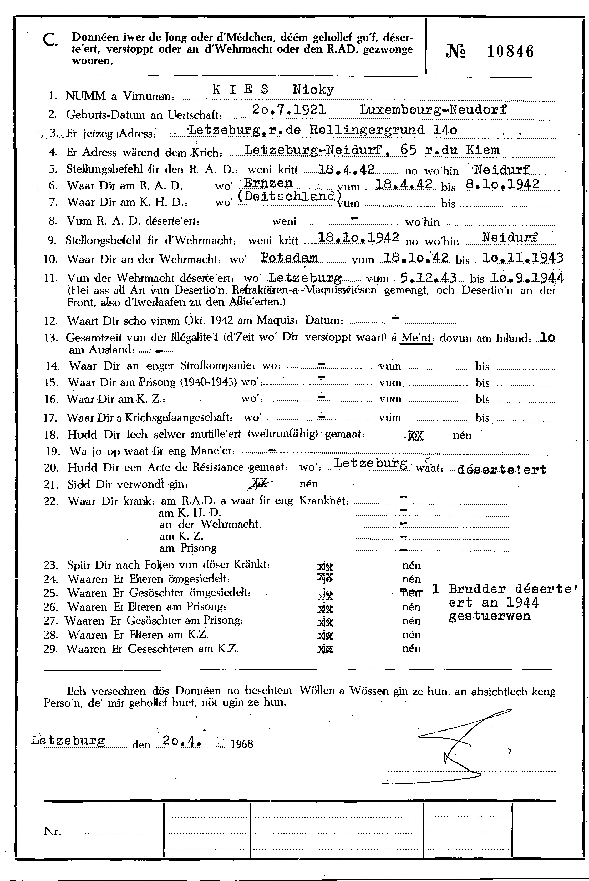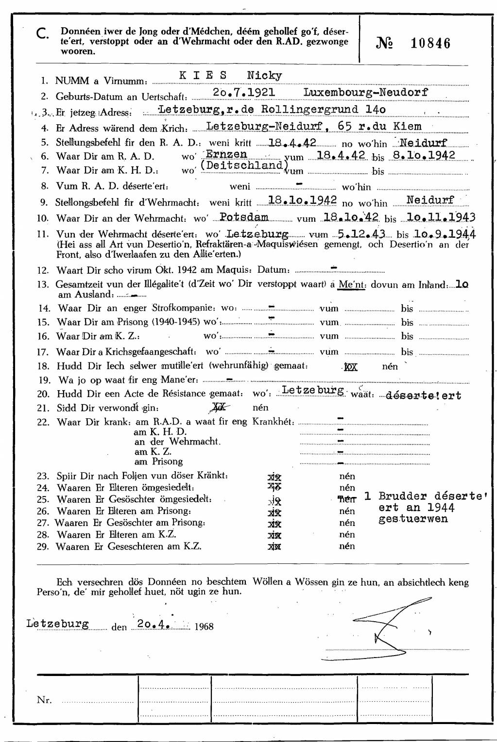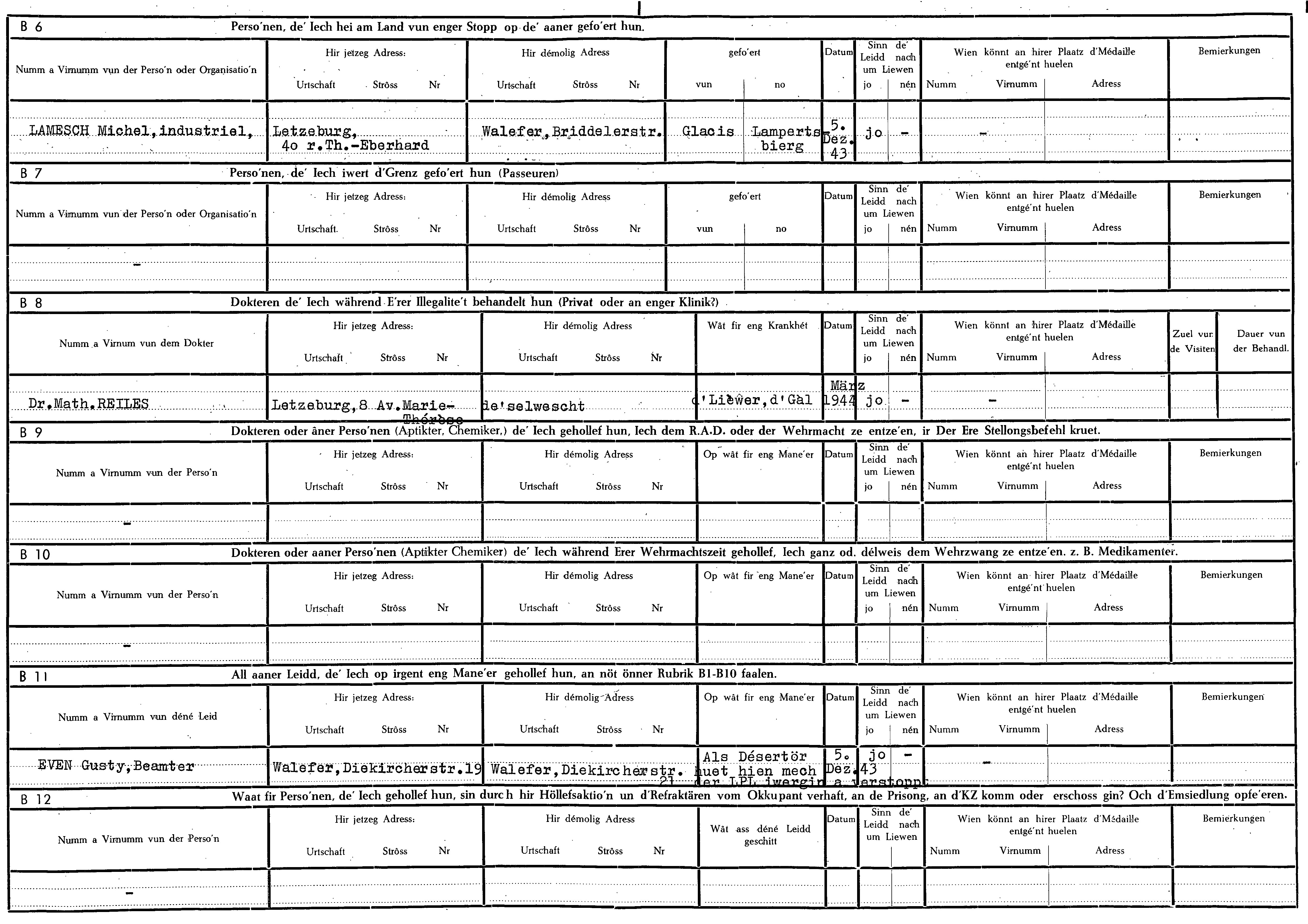 Nom, prénom, nom pendant l'occupation