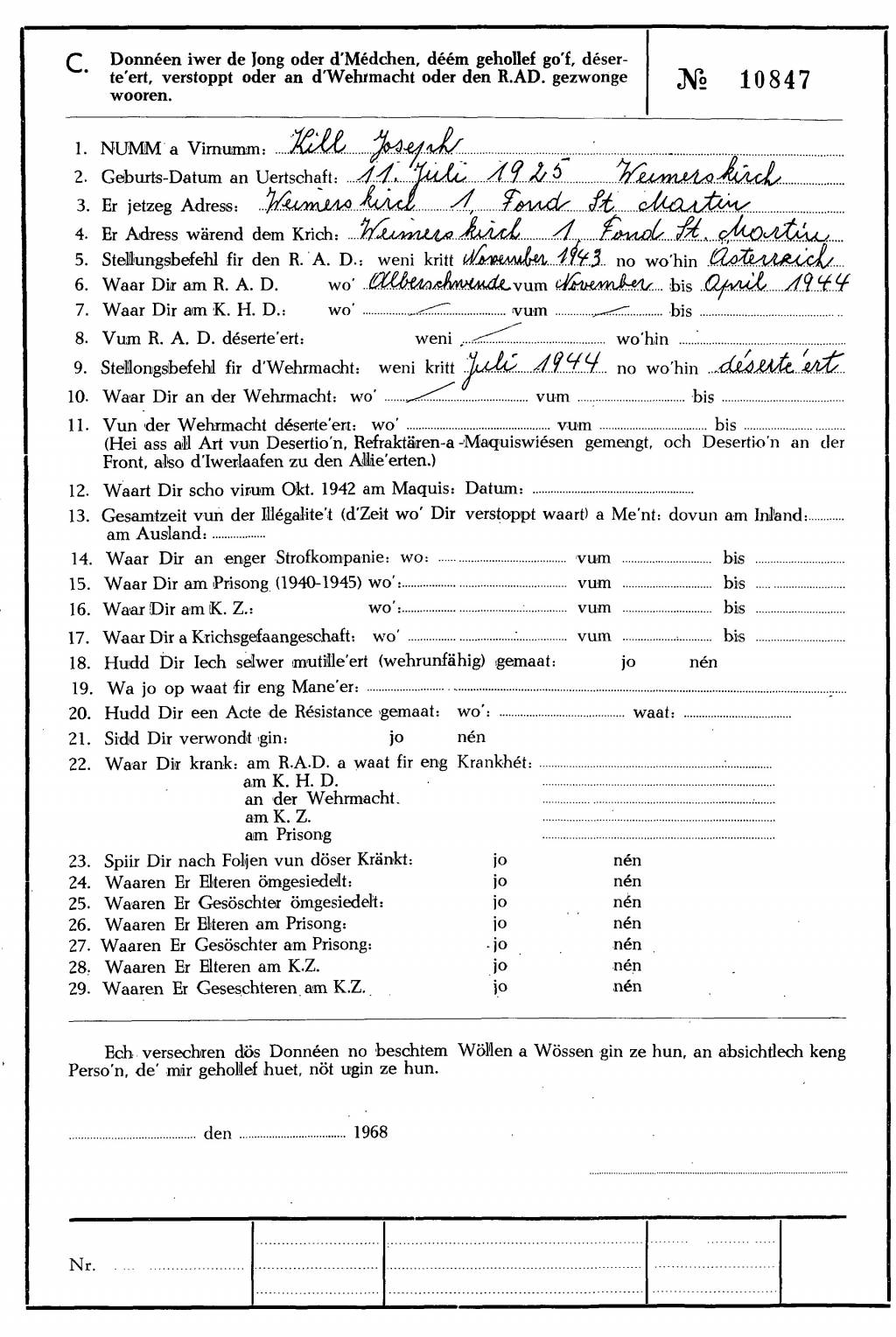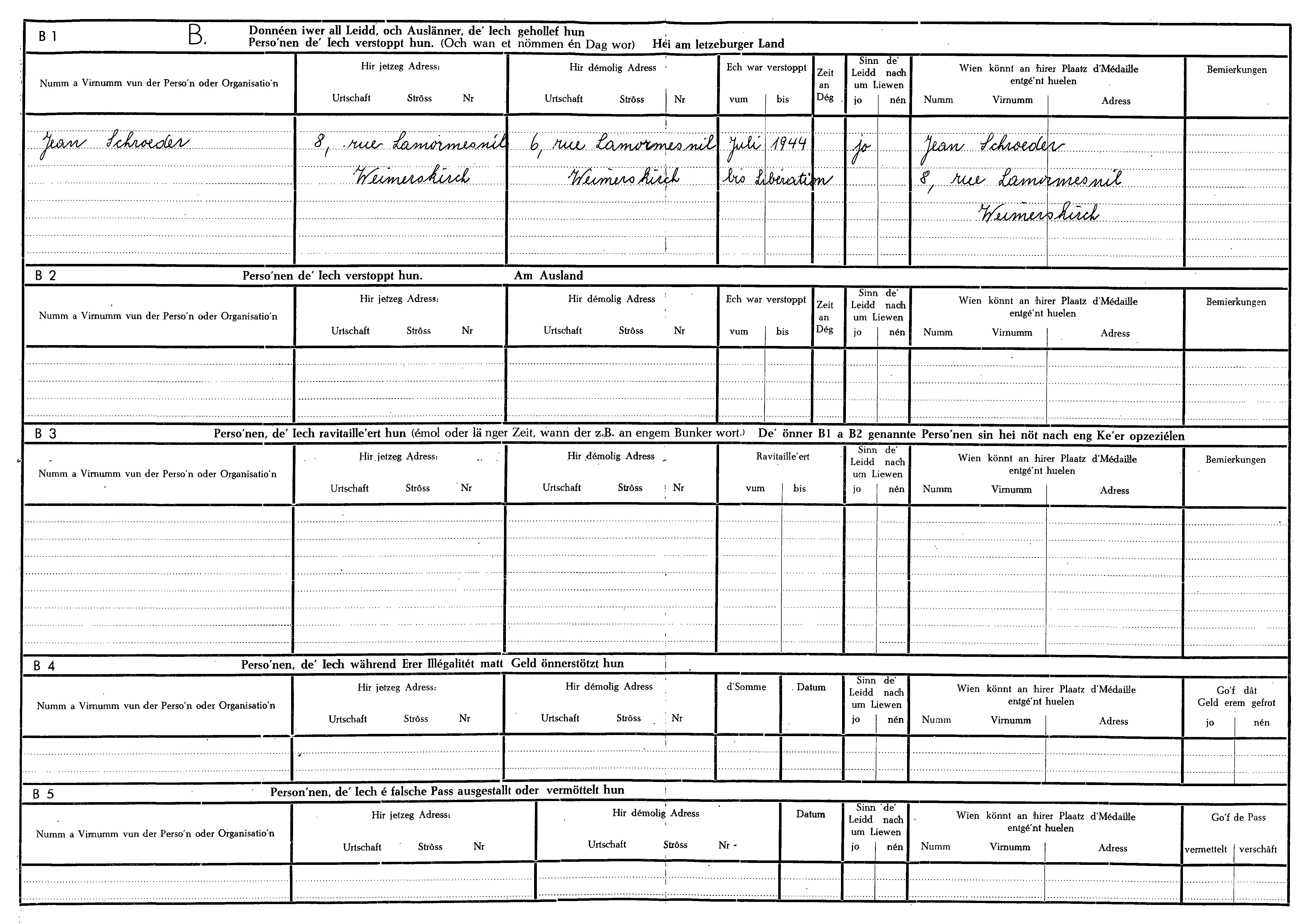 Nom, prénom, nom pendant l'occupation