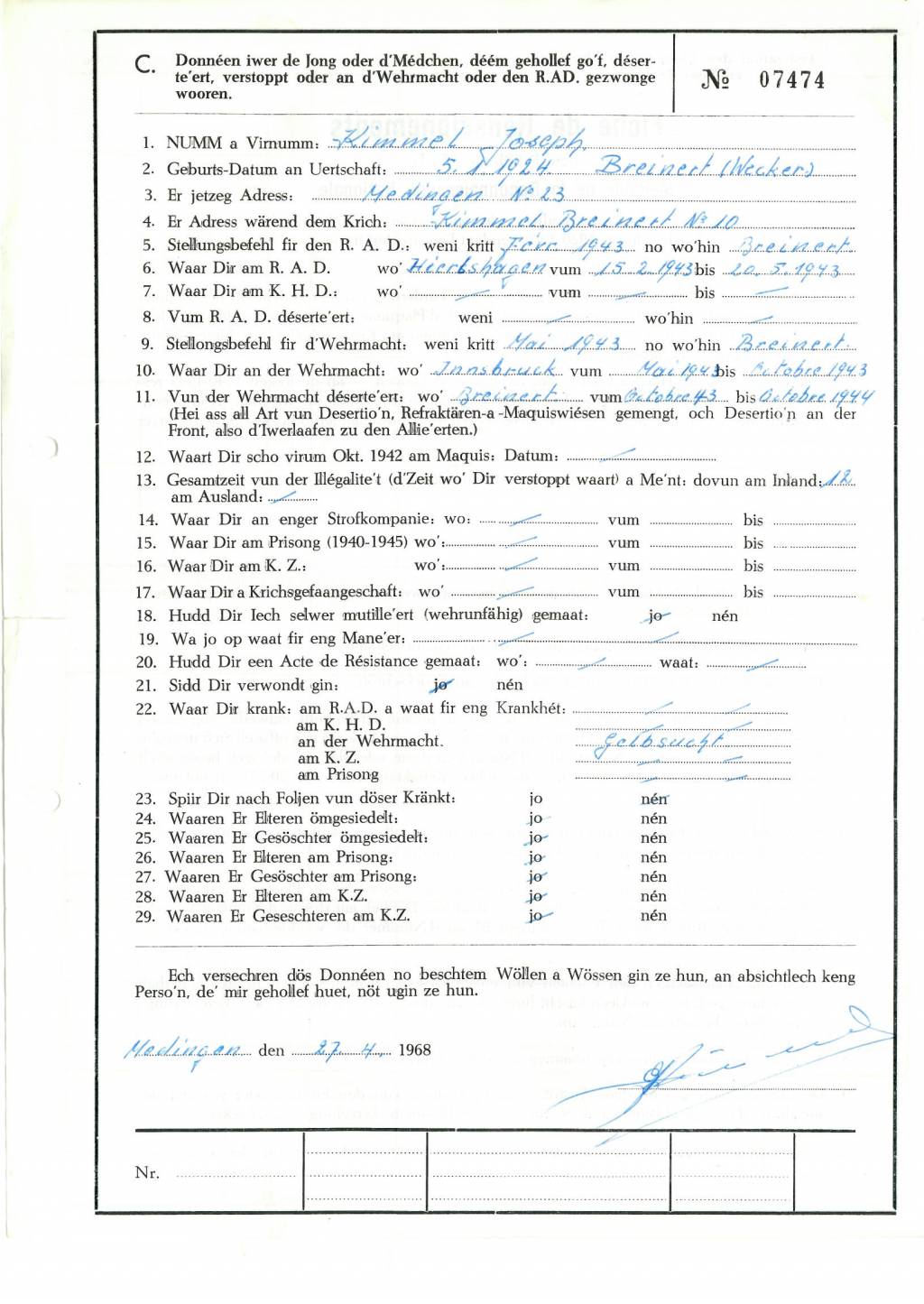 Nom, prénom, nom pendant l'occupation