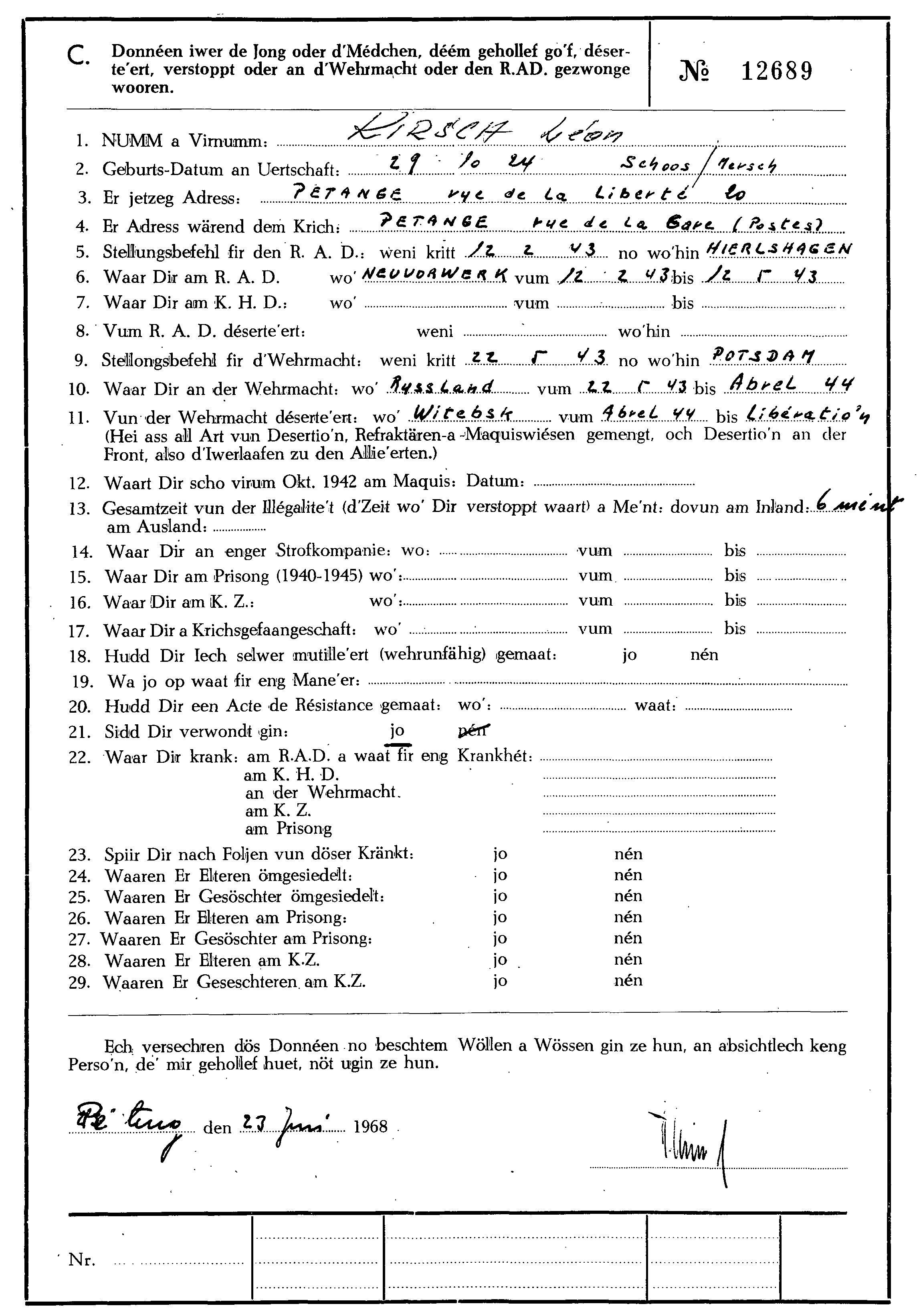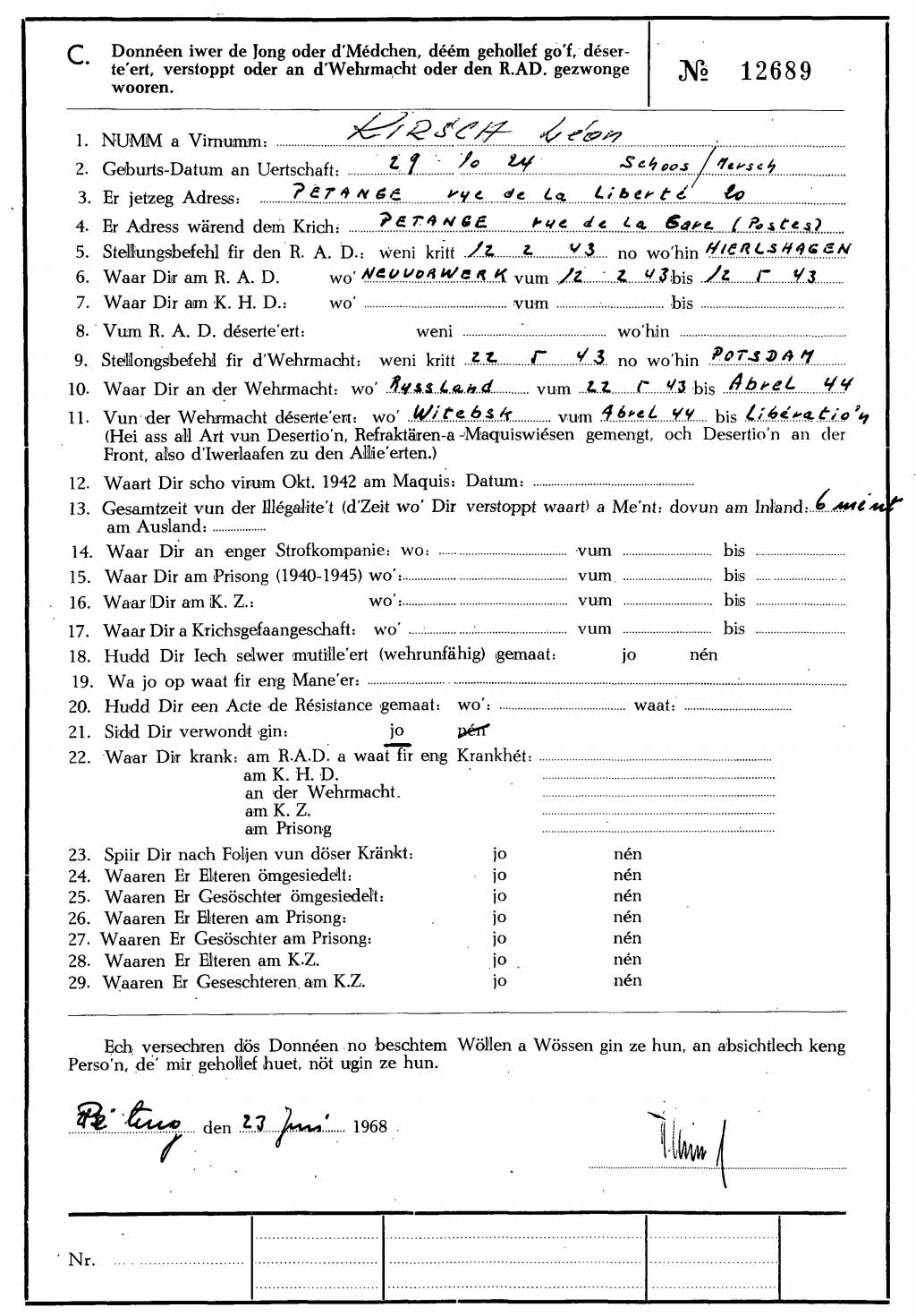Nom, prénom, nom pendant l'occupation