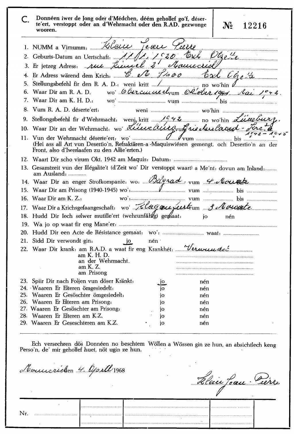 Nom, prénom, nom pendant l'occupation