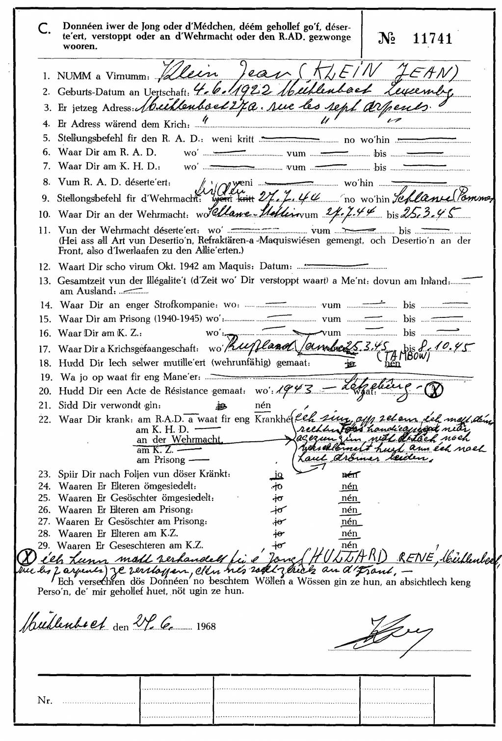 Nom, prénom, nom pendant l'occupation