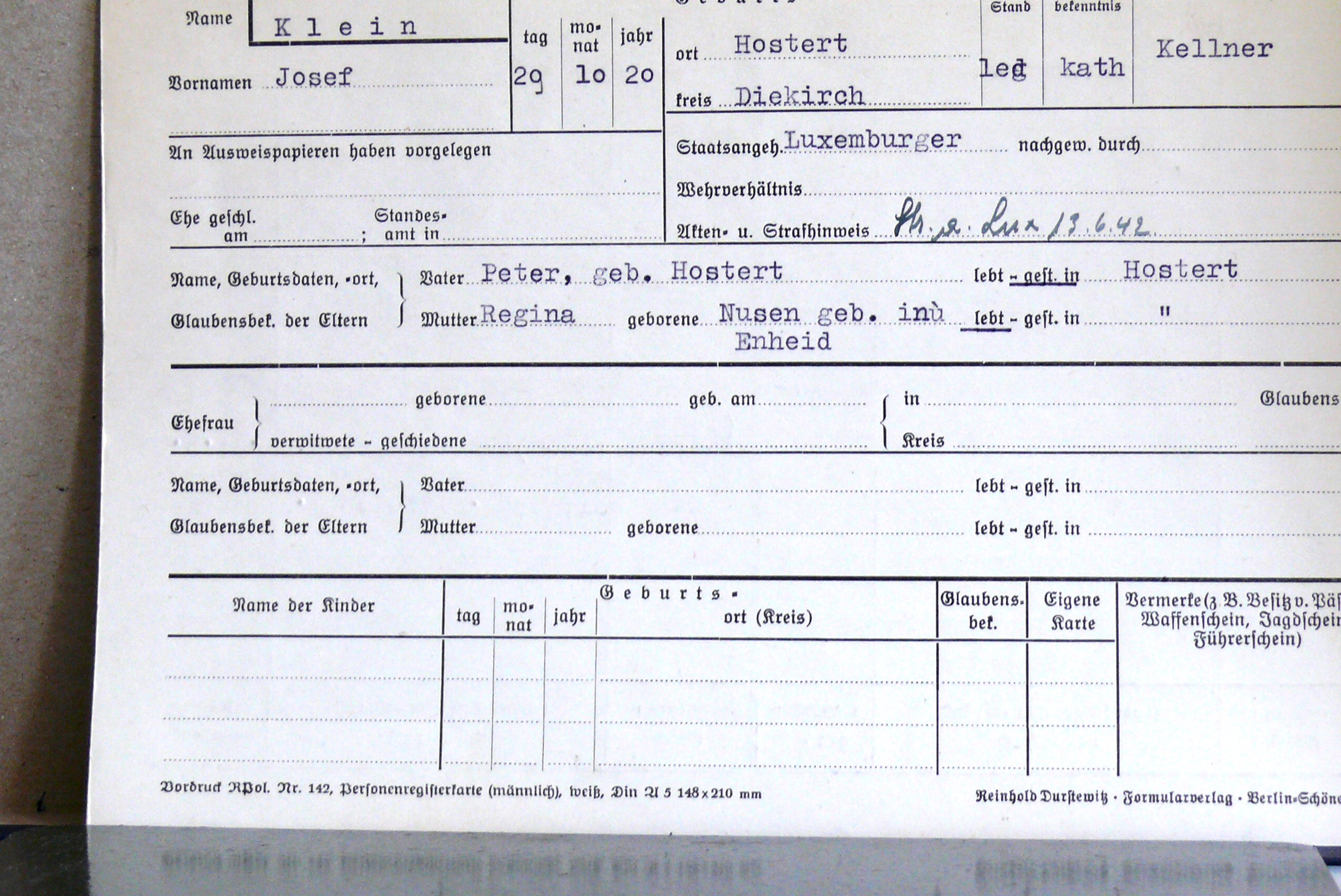 Nom, prénom, nom pendant l'occupation