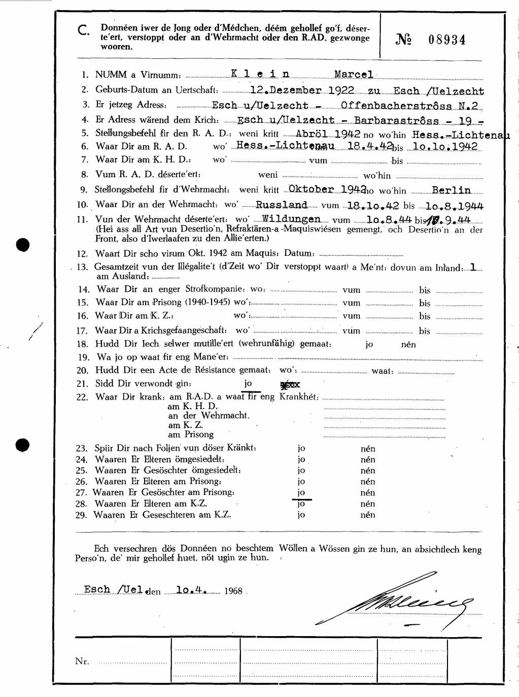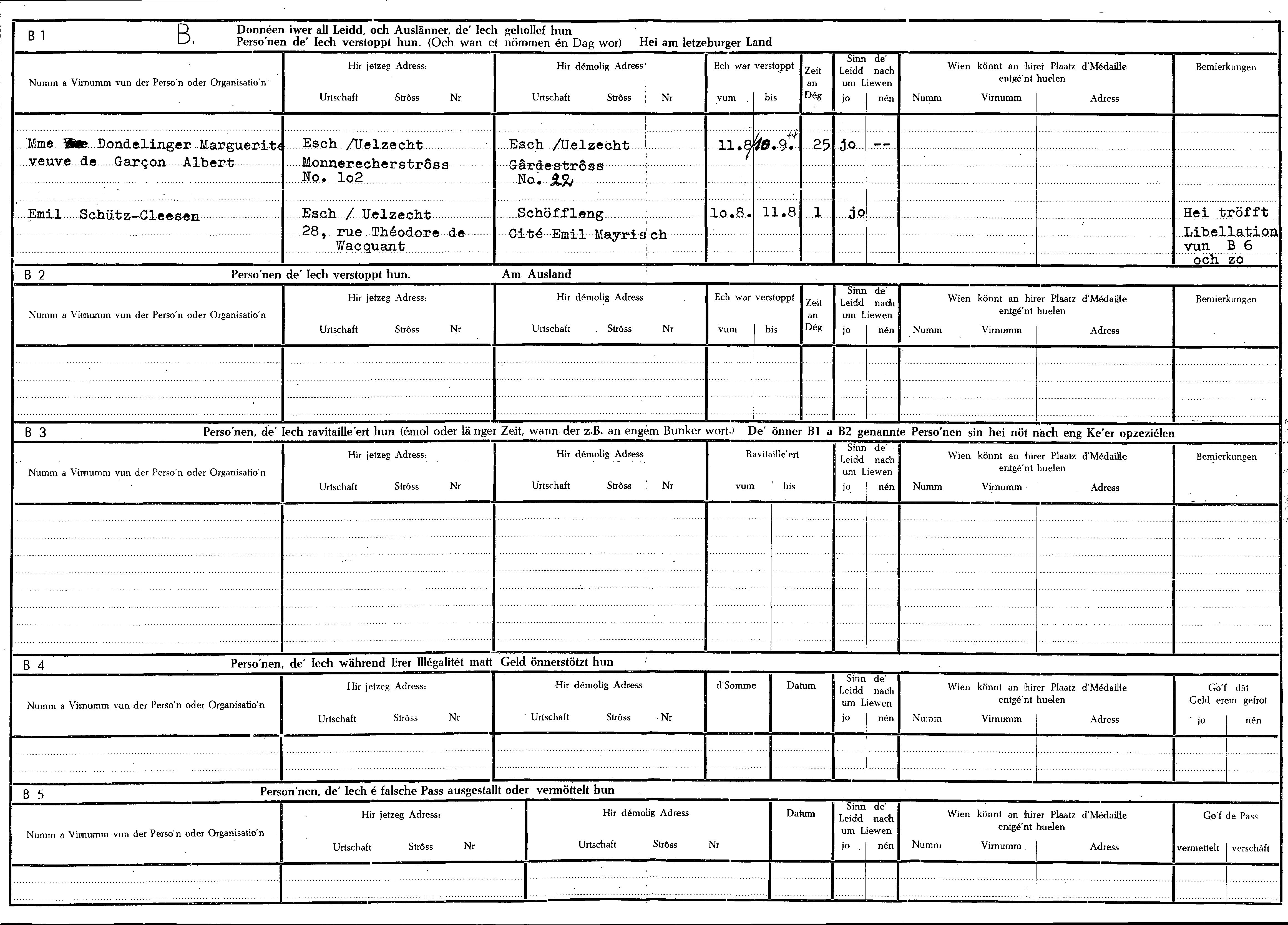 Nom, prénom, nom pendant l'occupation