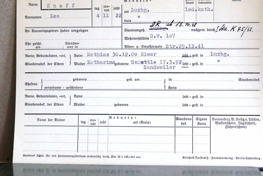 Knaff_Leo Knaff_Leo_Livre_FIRWAT_ERNY_J_LAMBORELLE_2014.pdf Télécharger le document MRN 1.jpg Télécharger le document 2.jpg Télécharger le document 3.jpg Télécharger le document VDL P1050012.JPG Télécharger le document P1050013.JPG Télécharger le document