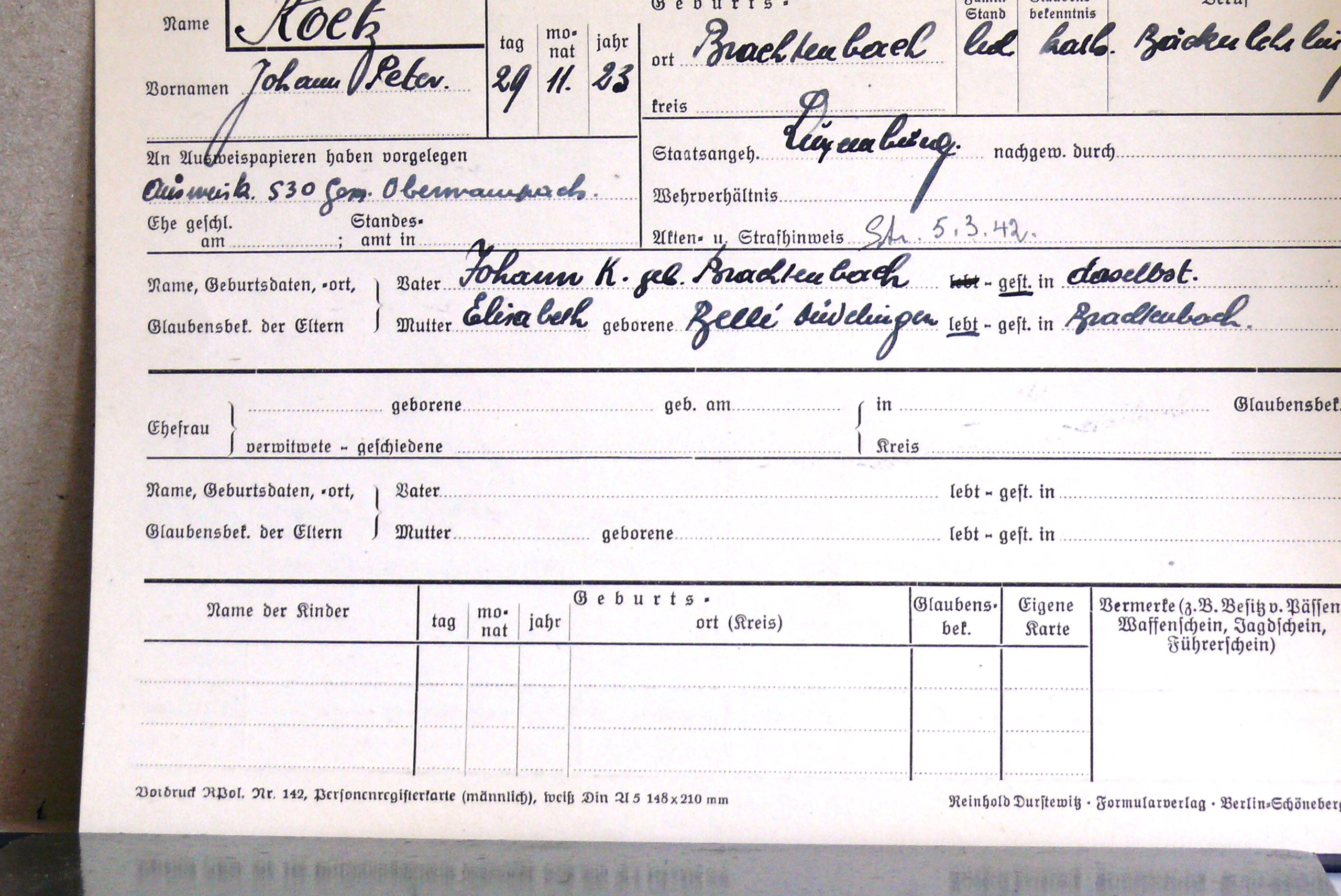 Nom, prénom, nom pendant l'occupation