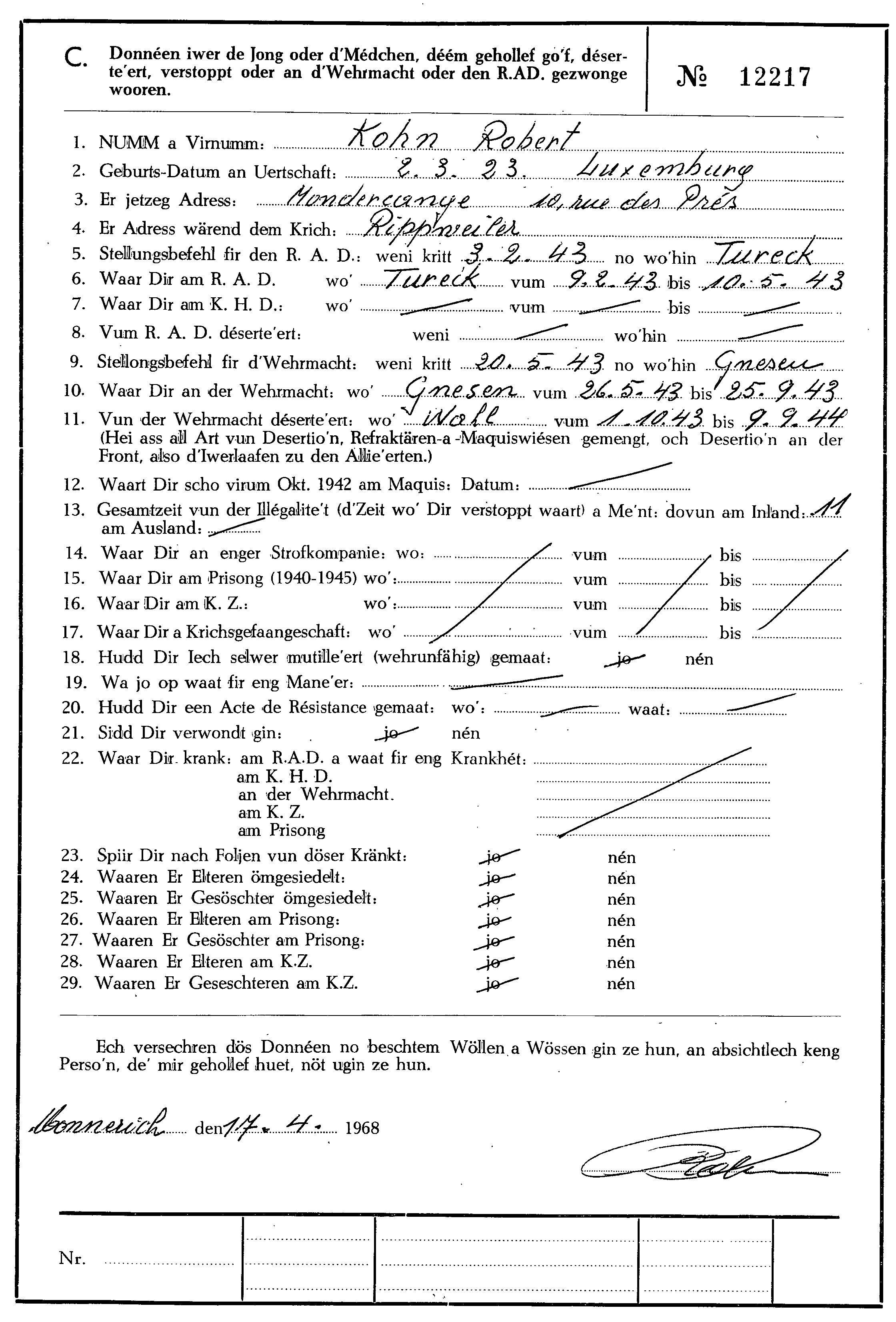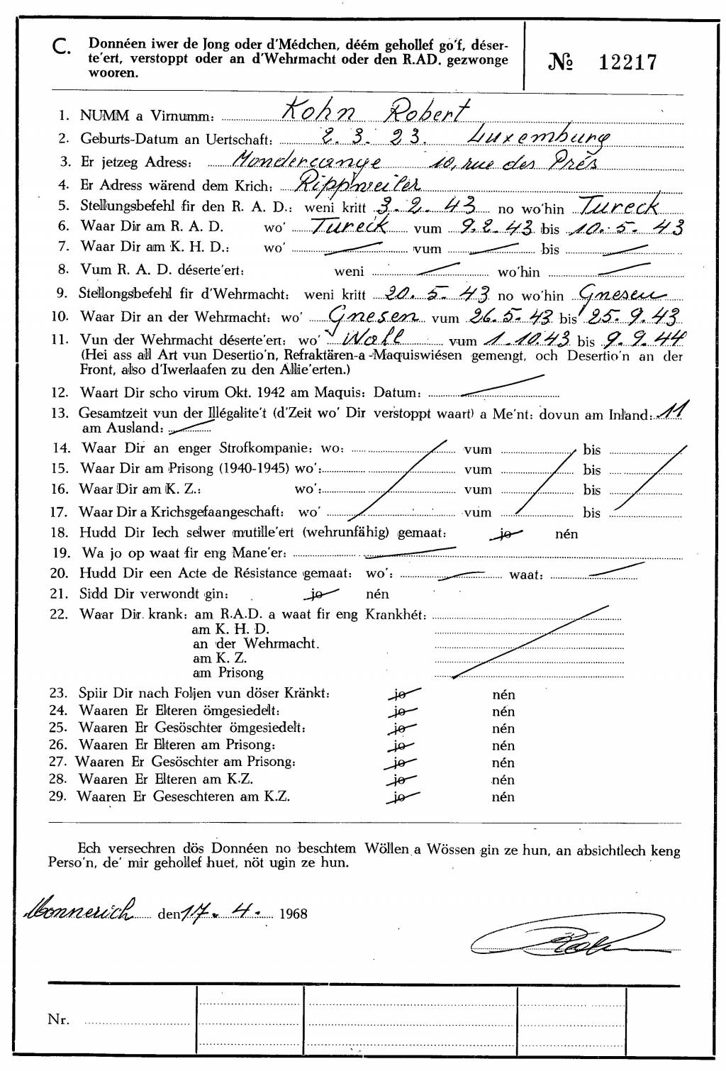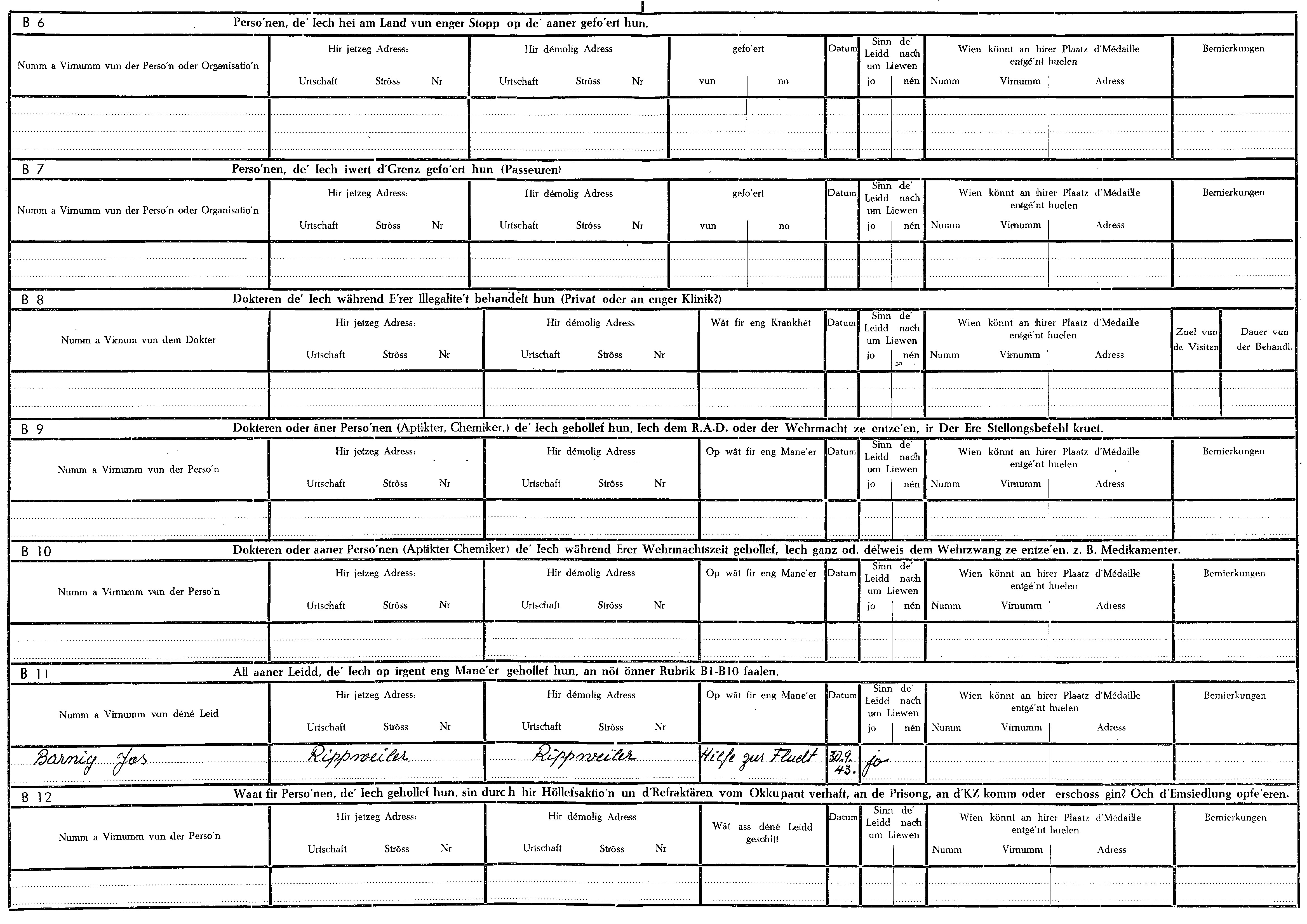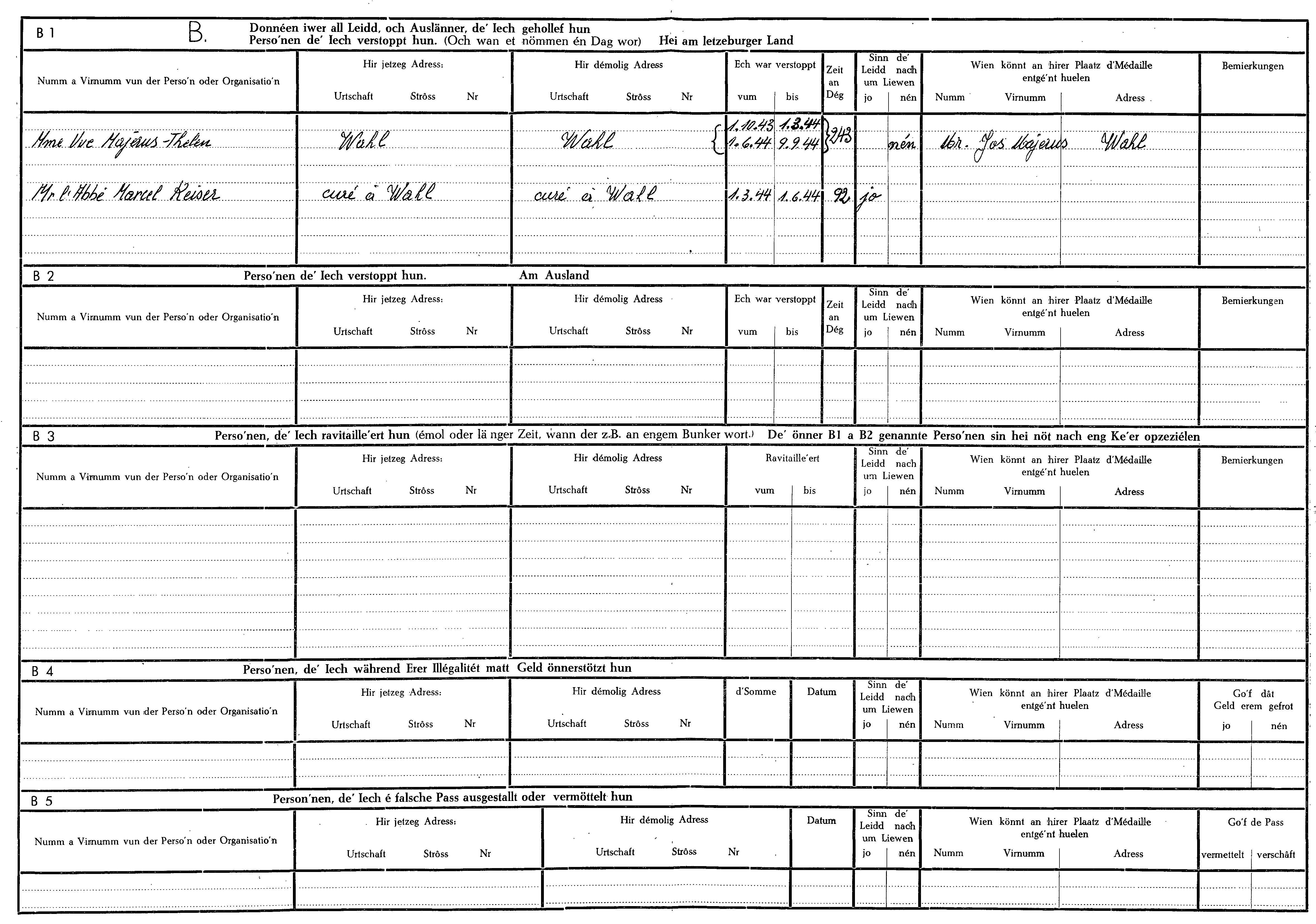 Nom, prénom, nom pendant l'occupation