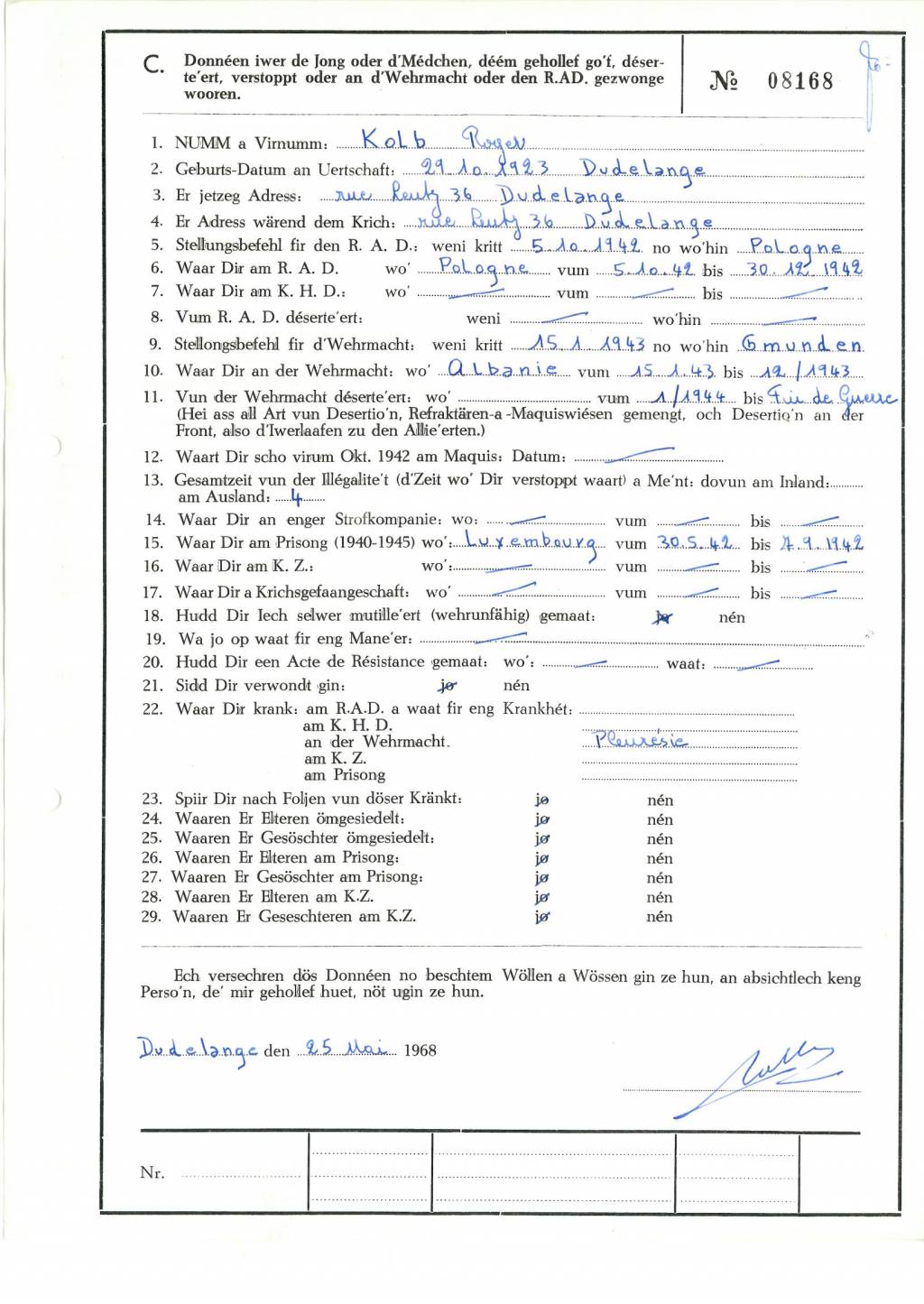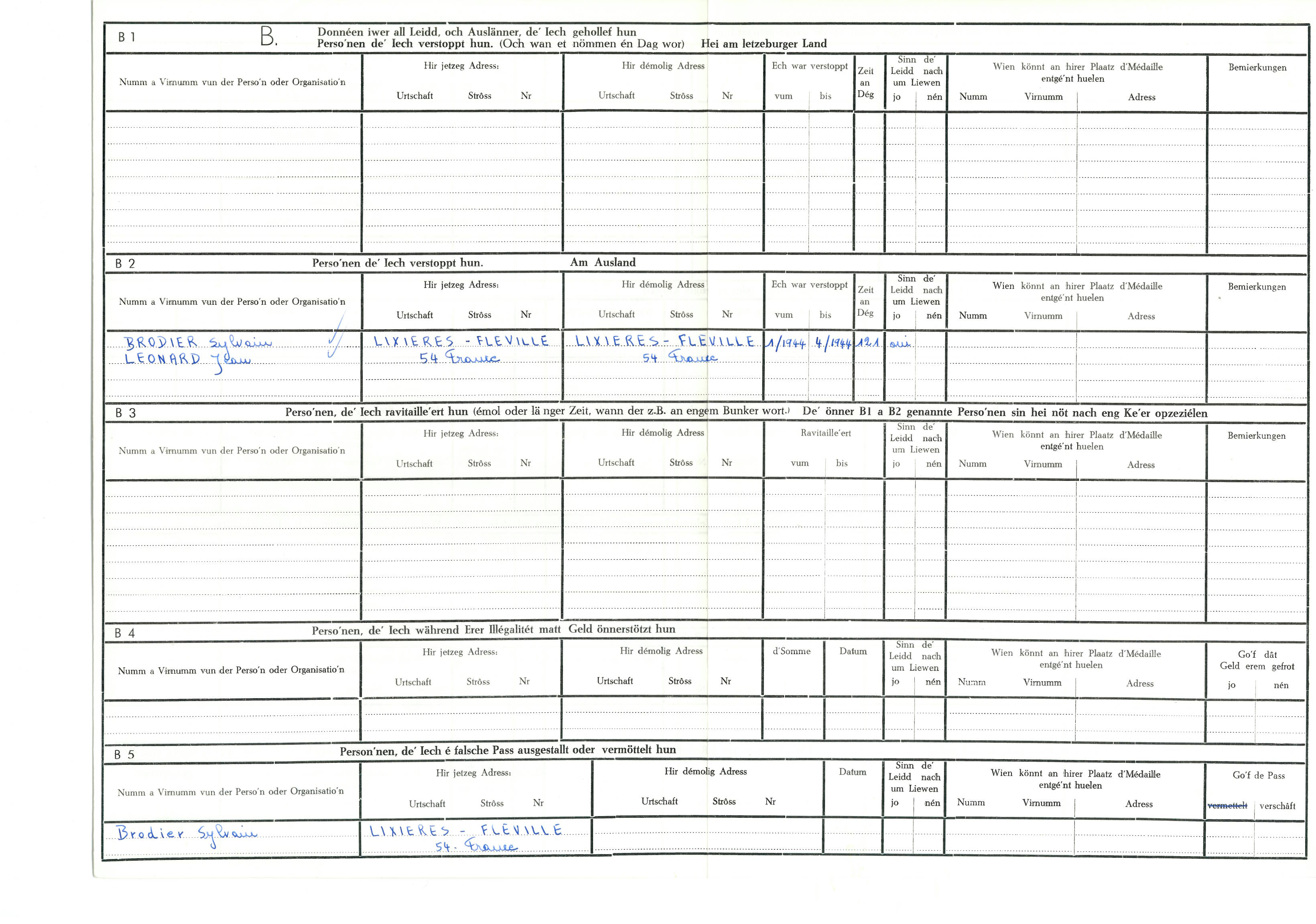 Nom, prénom, nom pendant l'occupation