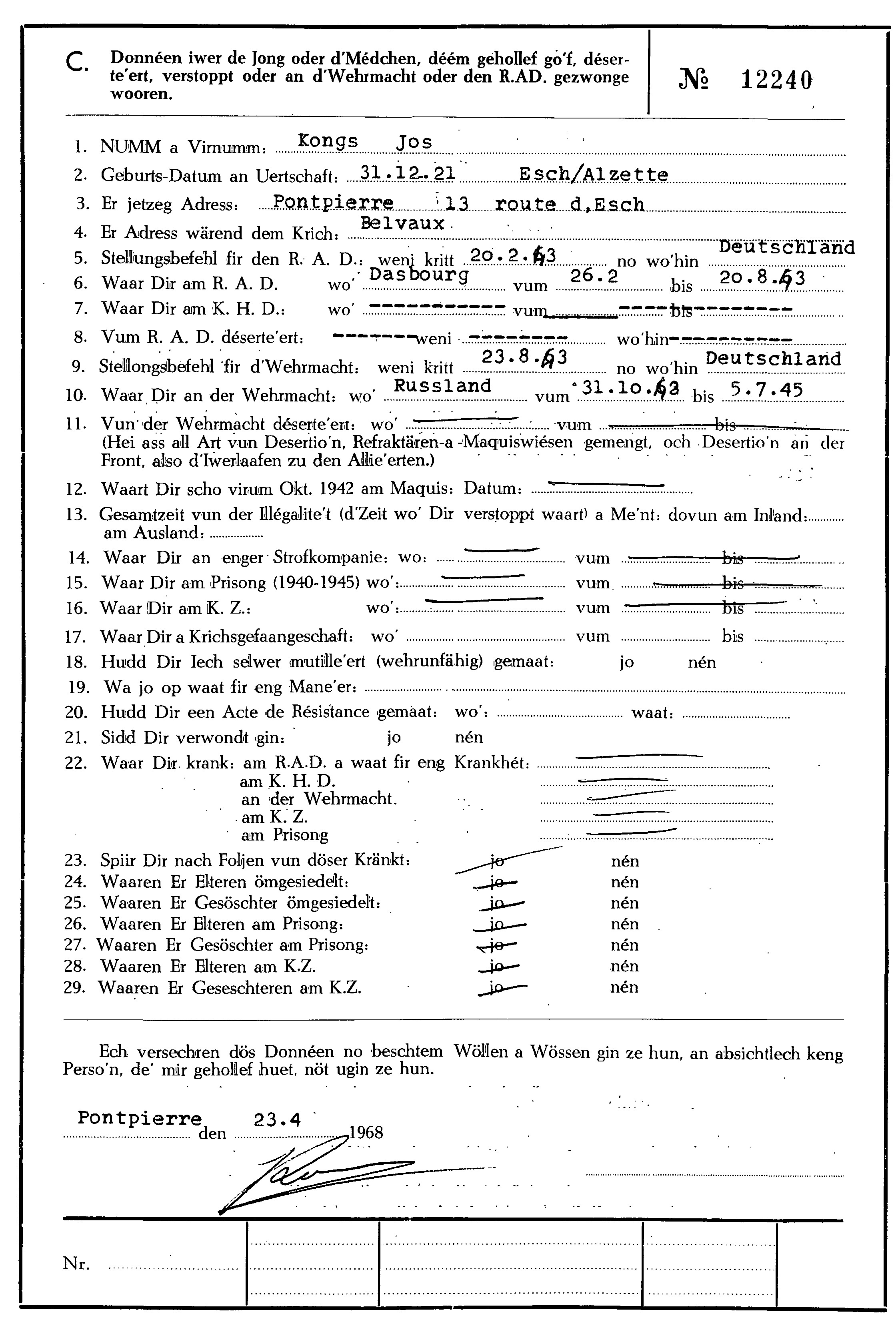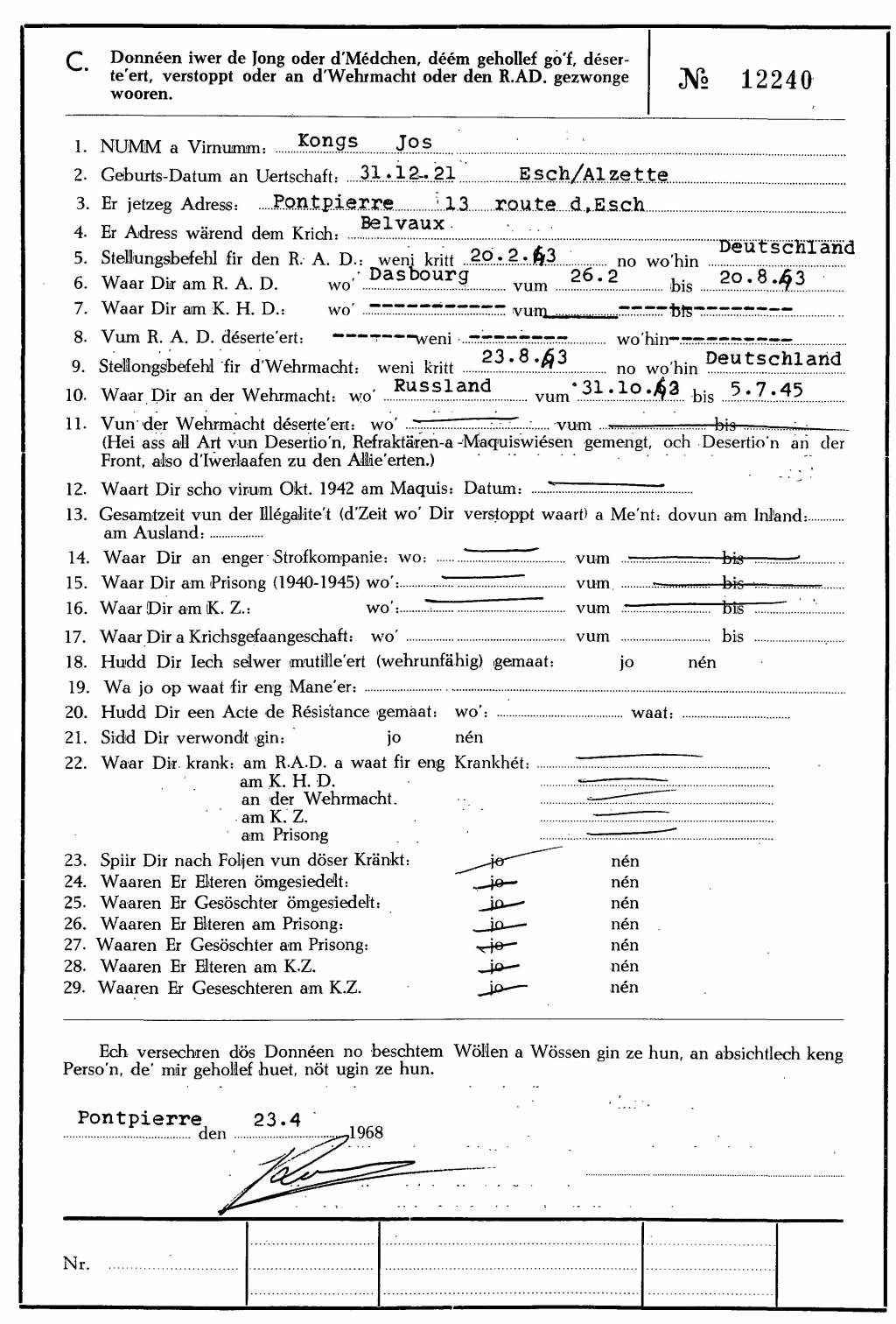 Nom, prénom, nom pendant l'occupation