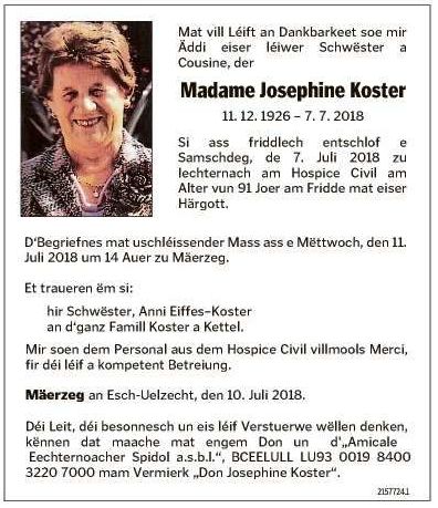 RIP_Koster_Josephine Koster_Josephine_11121926_07072018__LW_10072018.jpg Télécharger le document Koster_Josephine_11121926_07072018_LW_10072018.jpg Télécharger le document