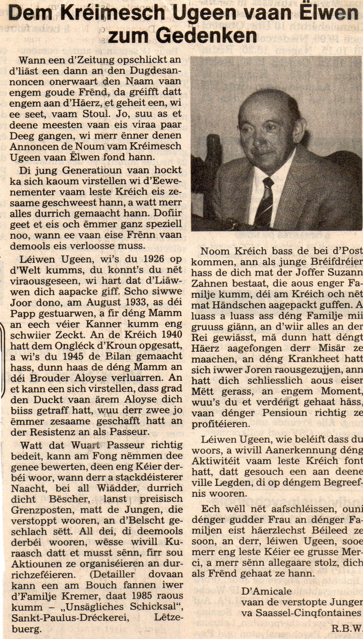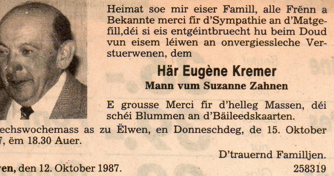 Kremer Eugène ev 04061926 Biwisch 01091987 KREMER Nicolas Aus dunkler Zeit 1993