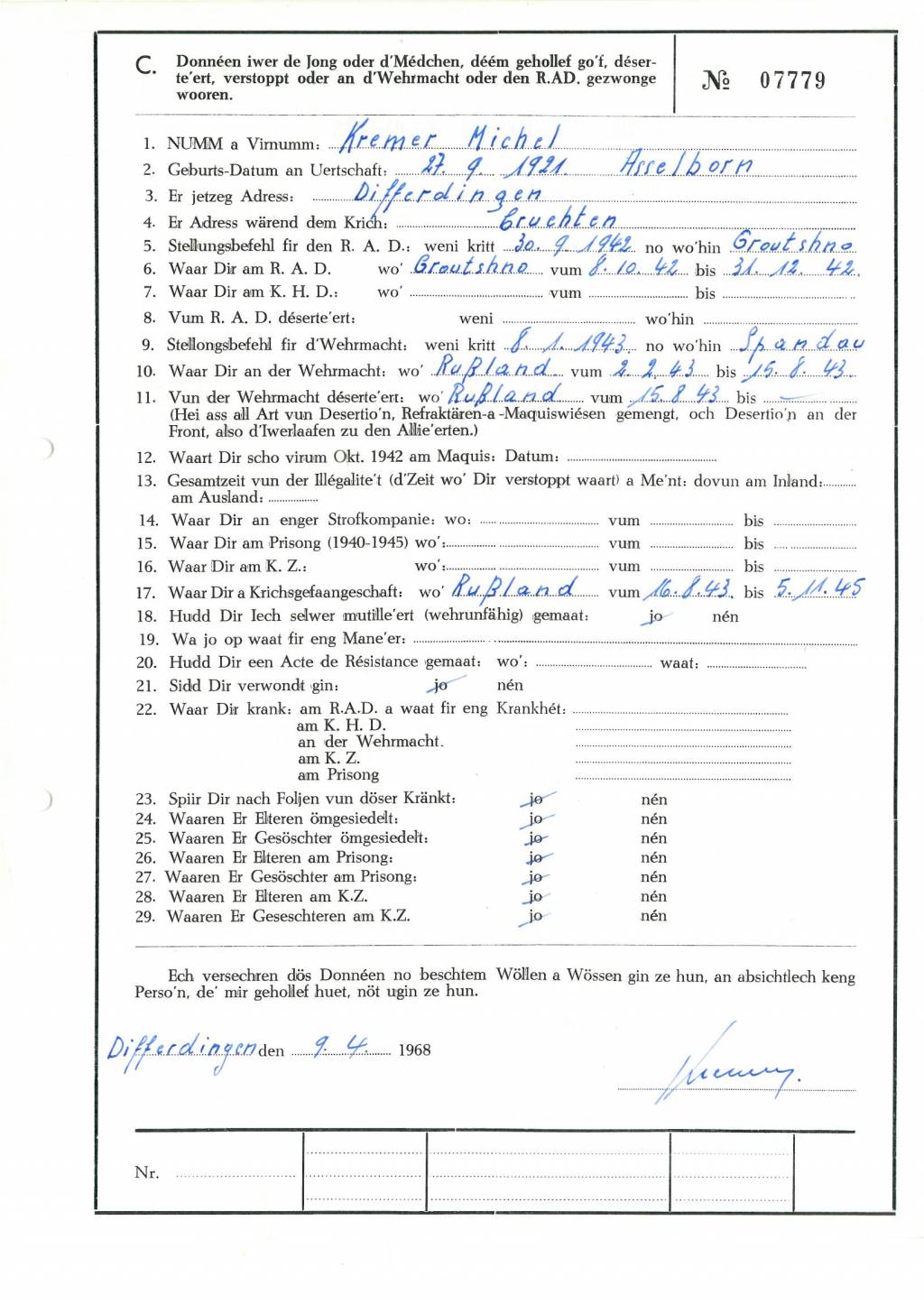 Nom, prénom, nom pendant l'occupation