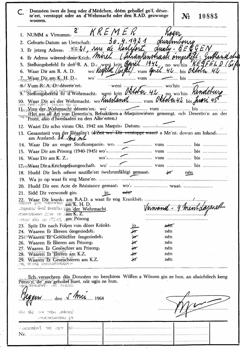 Kremer_Roger_Beggen Kremer_Roger_Beggen_extrait_article_Bley_Franois_3_Extrait_Livre_Schicksalswege_einer_Kriegsgeneration_GREG_Ettelbruck_EG_2017 - Copy.jpg Télécharger le document MRN 1.jpg Télécharger le document 2.jpg Télécharger le document 3.jpg Télécharger le document