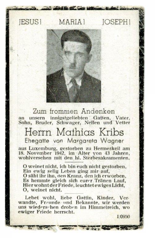 Divers Kribs Mathias.JPG Télécharger le document LPPD Livre Or des Camps.jpg Télécharger le document Mathias Kribs Totenbild_Famille MOUSEL.jpg Télécharger le document