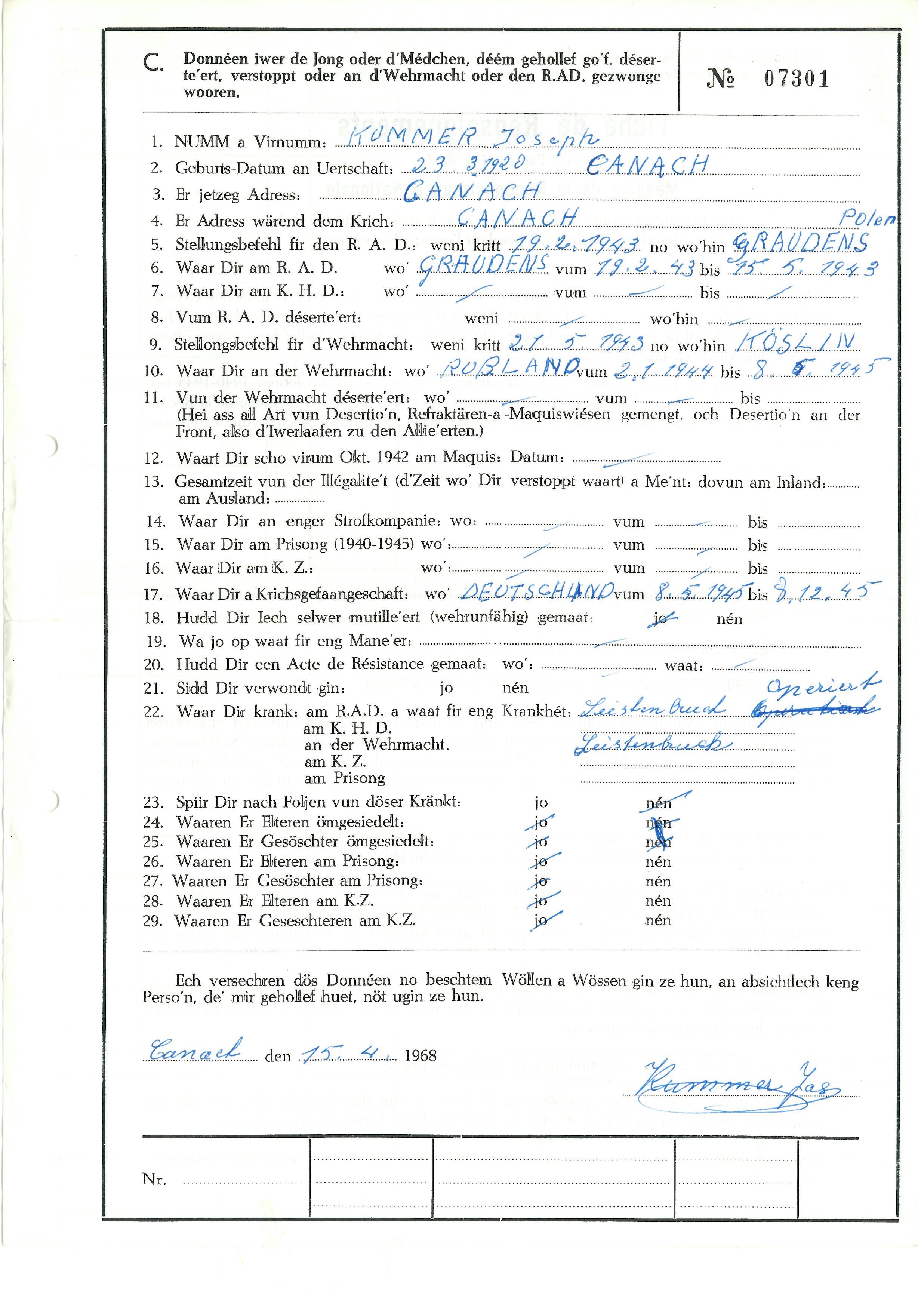 Nom, prénom, nom pendant l'occupation