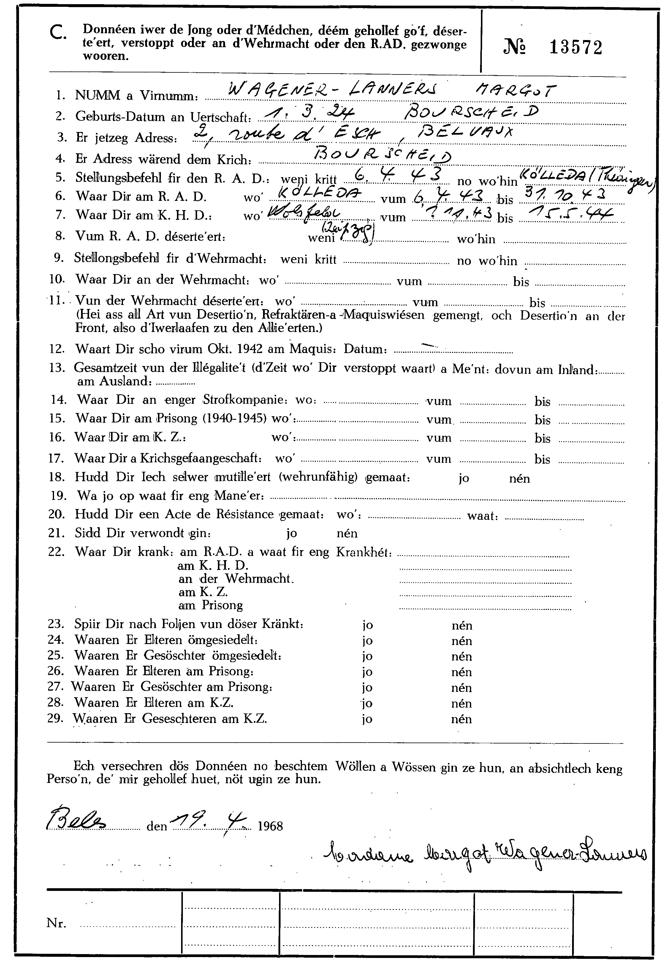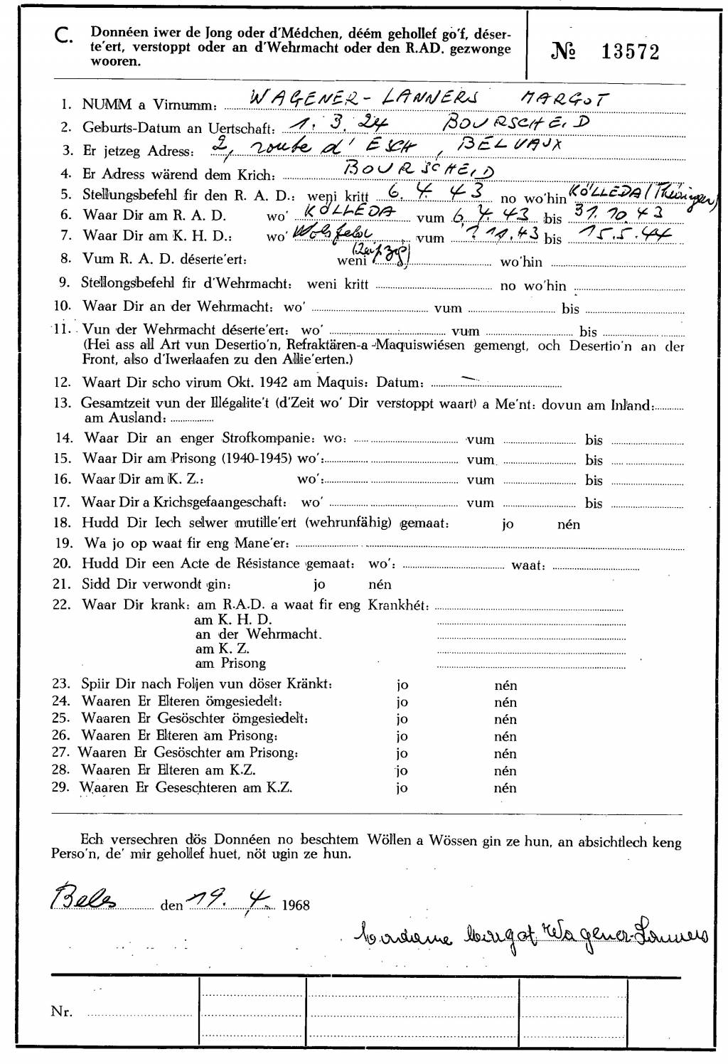 Nom, prénom, nom pendant l'occupation
