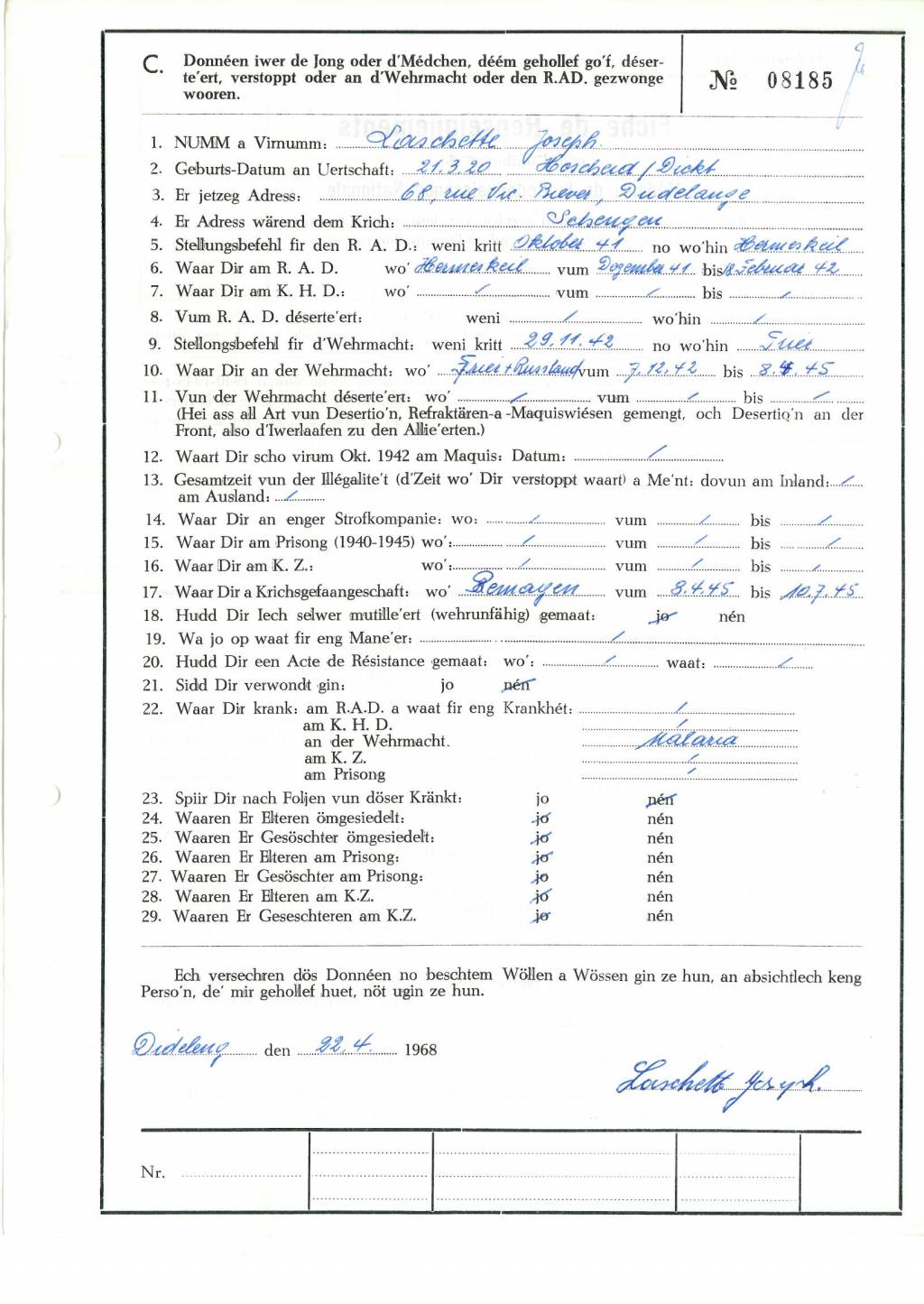 Nom, prénom, nom pendant l'occupation