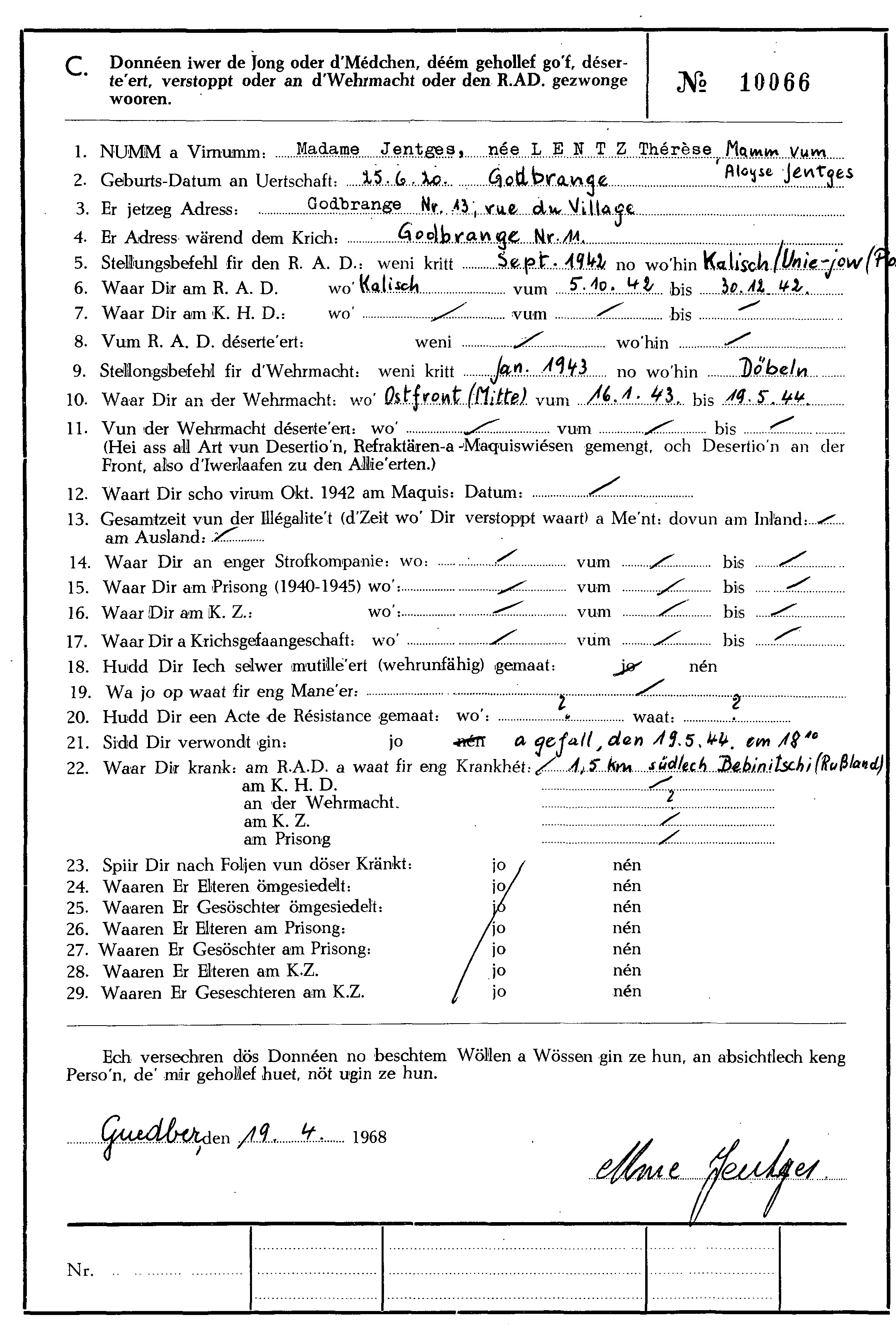Lentz épouse de Jentges Therese
