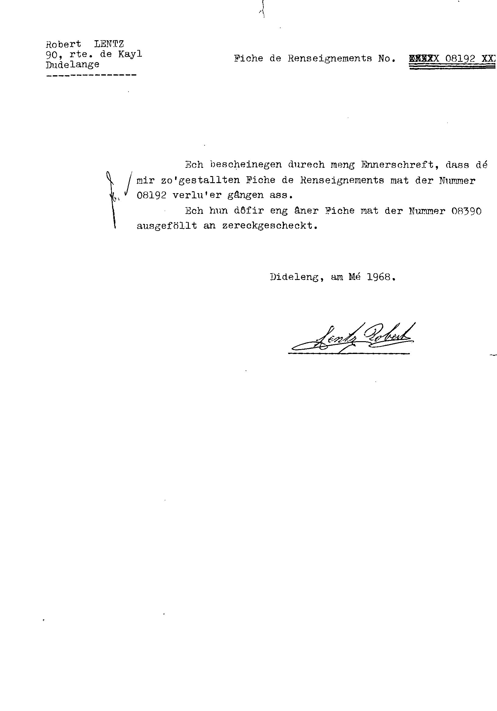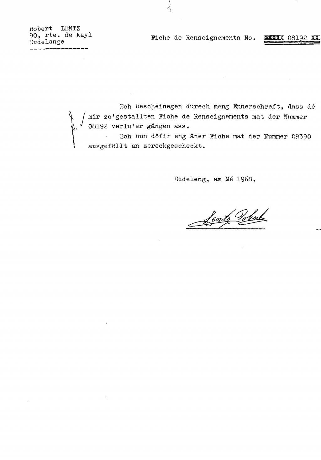 Divers Lentz Robert.jpg Télécharger le document LENTZ Robert 30031922 Dudelange 1.jpg Télécharger le document 2.jpg Télécharger le document 3.jpg Télécharger le document 4.jpg Télécharger le document 5.jpg Télécharger le document