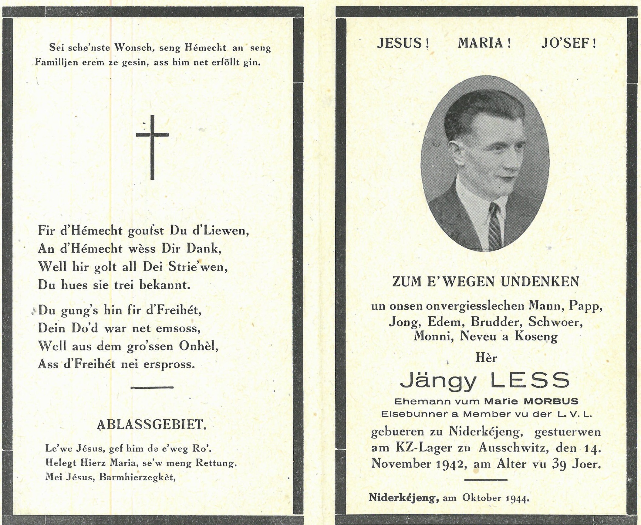 Divers Less Jean.JPG Télécharger le document Less_Jean_Bascharage_14111942_Auschwitz_Fonds_Thill_Claude_Bereldange_mars_2018.jpg Télécharger le document