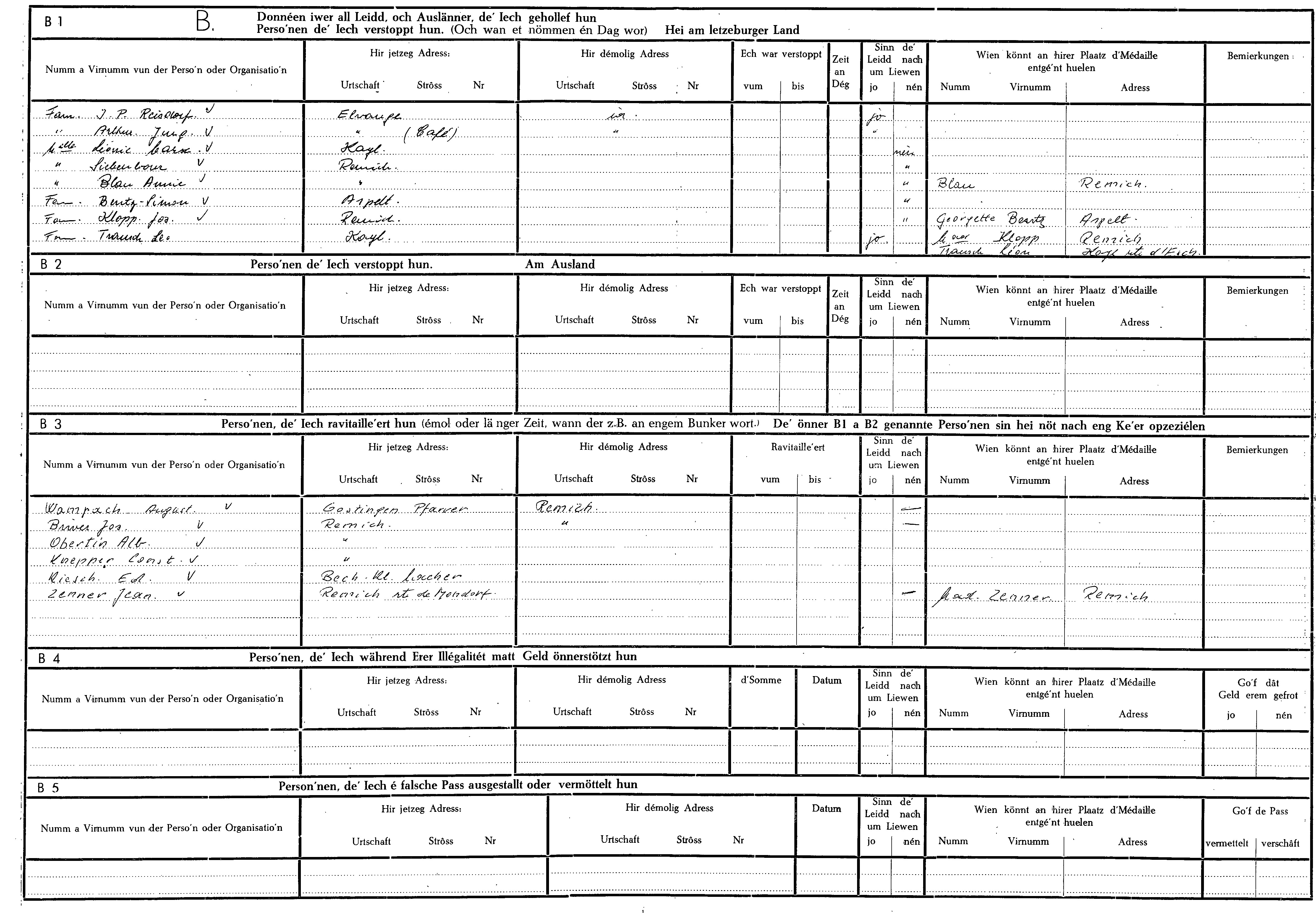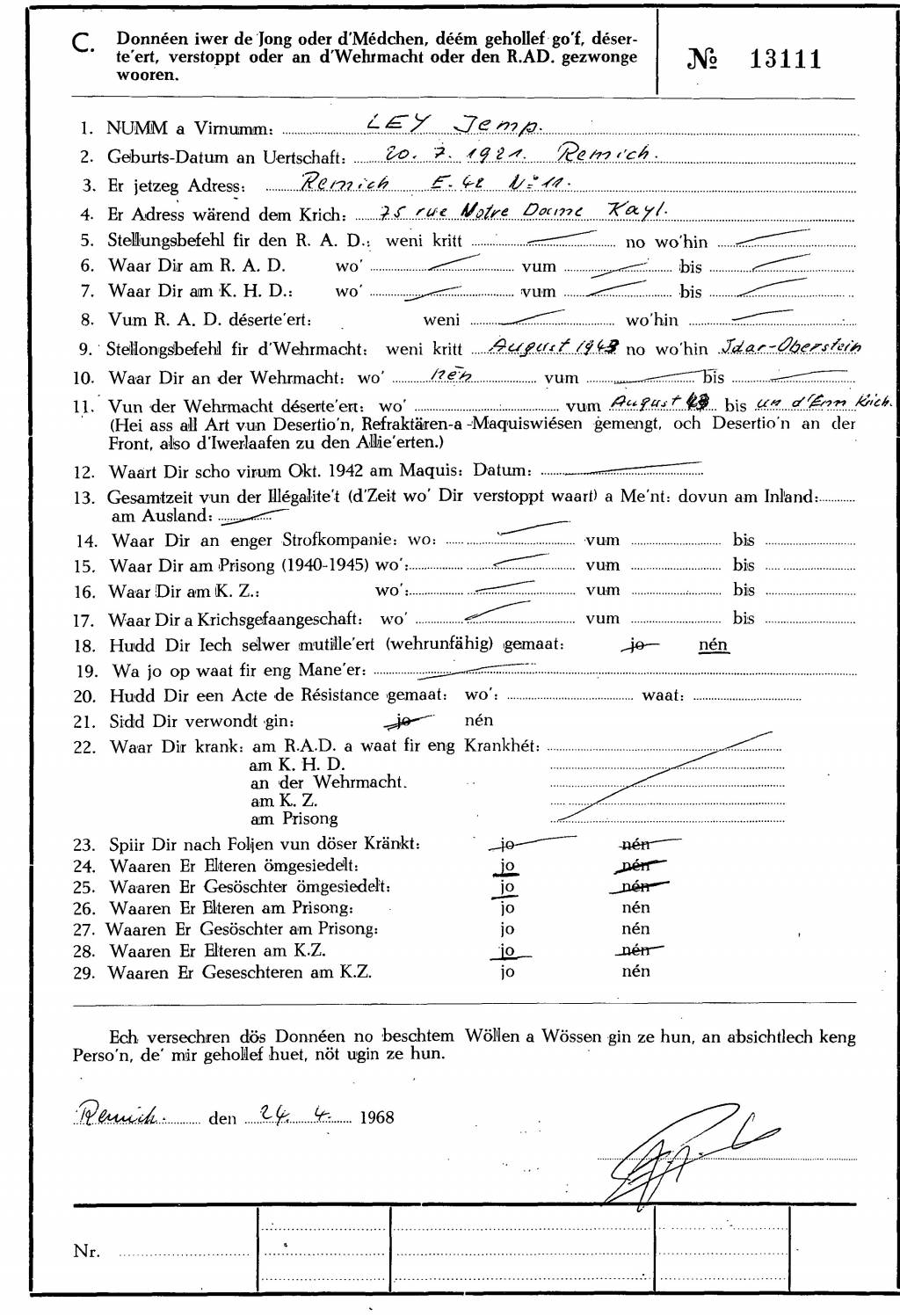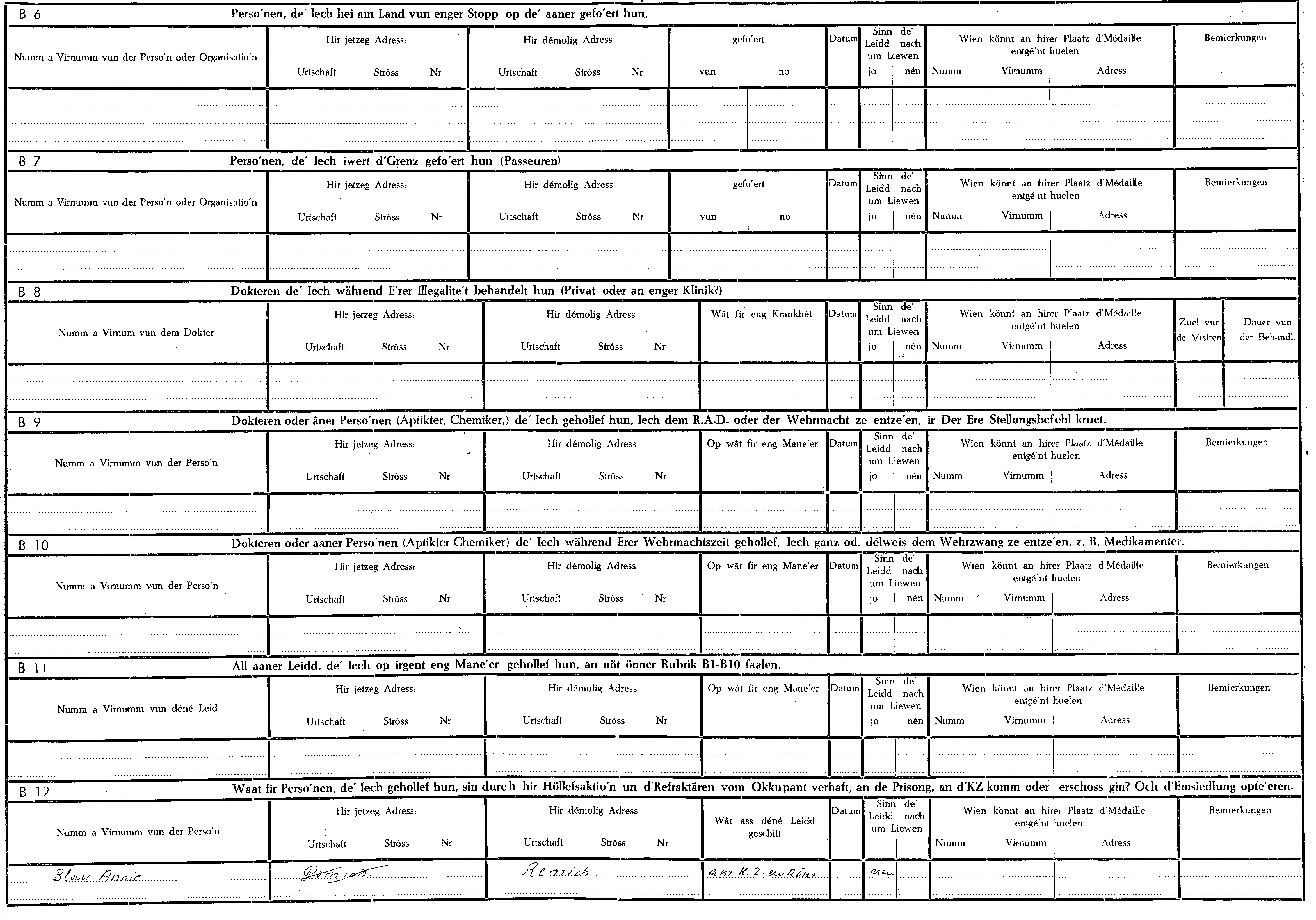 Nom, prénom, nom pendant l'occupation