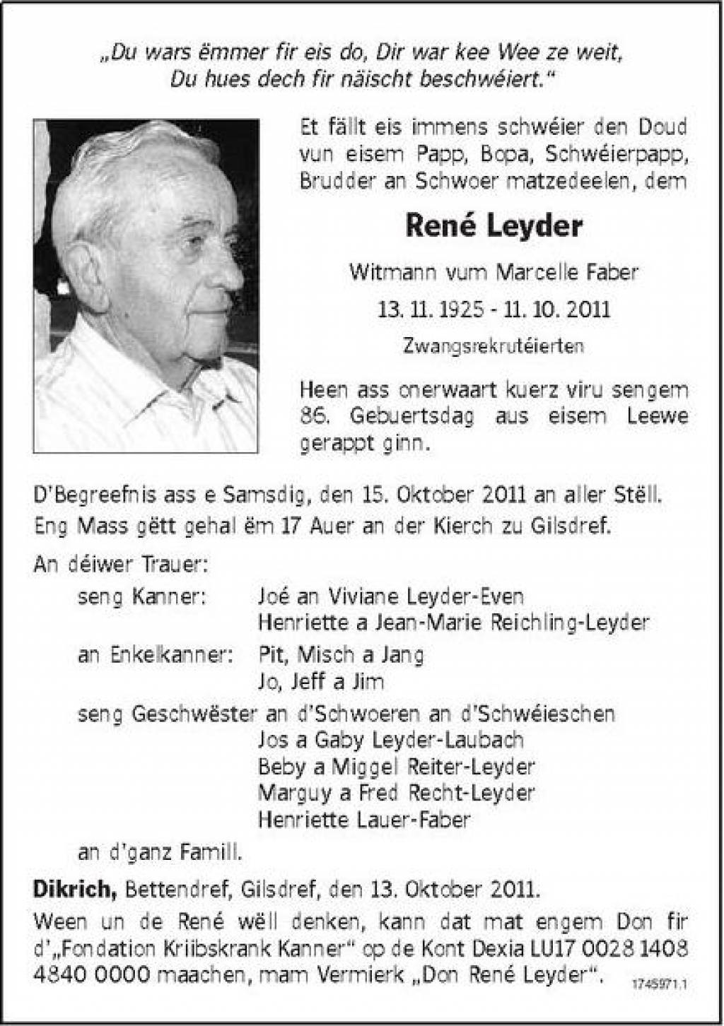 Divers Gilsdorf7.pdf Télécharger le document Leyder René Jean 13111925 Gilsdorf 11102011.jpg Télécharger le document Leyder René.jpg Télécharger le document