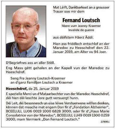 Divers Loutsch Fernand.JPG Télécharger le document RIP_Loutsch_Fernand_Heeschdref Loutsch_Fernand_13051924_22012019_LW_25012019.jpg Télécharger le document Loutsch_Fernand_LW_26012019.jpg Télécharger le document