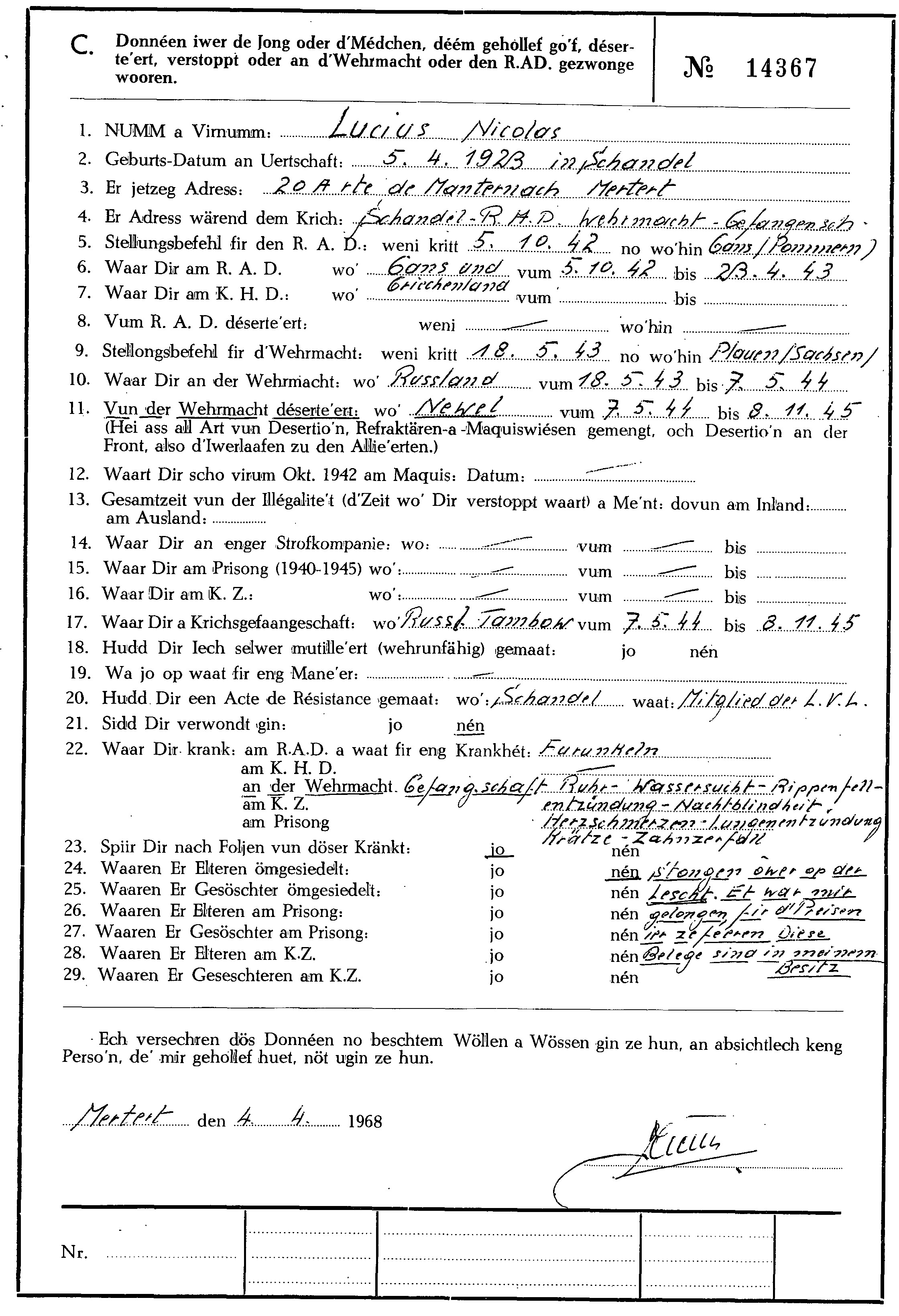 Nom, prénom, nom pendant l'occupation
