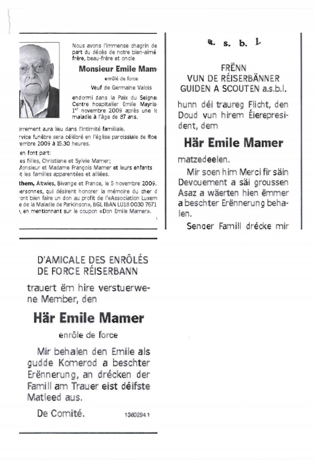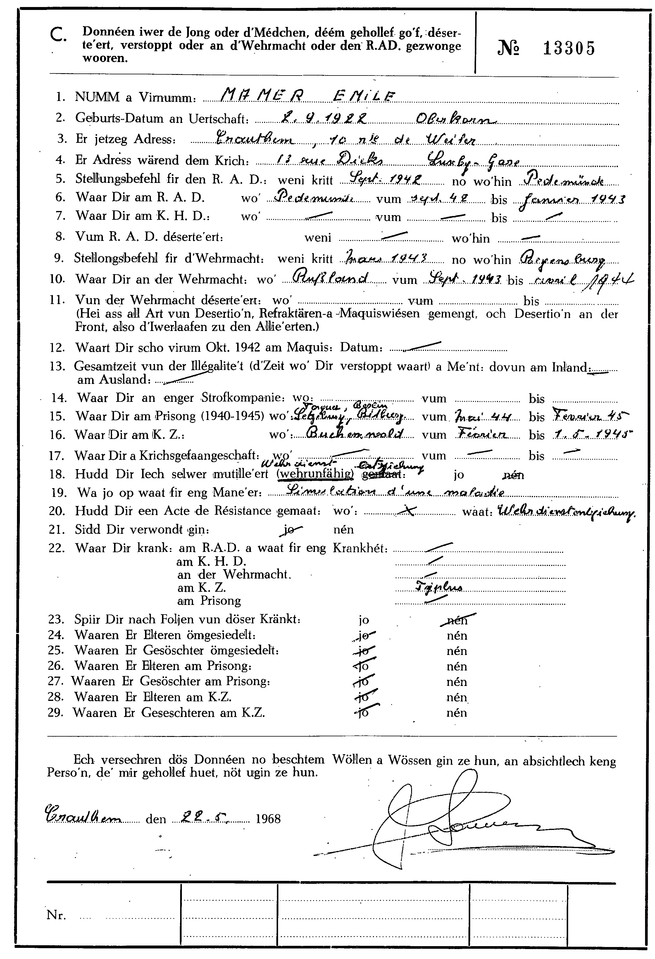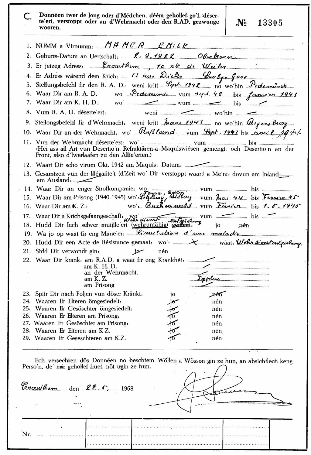 Divers Peenemünde.jpg Télécharger le document Mamer Emile Mamer Emile1.jpg Télécharger le document Mamer_Emile_02091922_Obercorn_Fonds_WEIRICH_Jos_HOLLERICH_2018_Box_20.jpg Télécharger le document MNR.jpg Télécharger le document MRN 1.jpg Télécharger le document 2.jpg Télécharger le document 3.jpg Télécharger le document