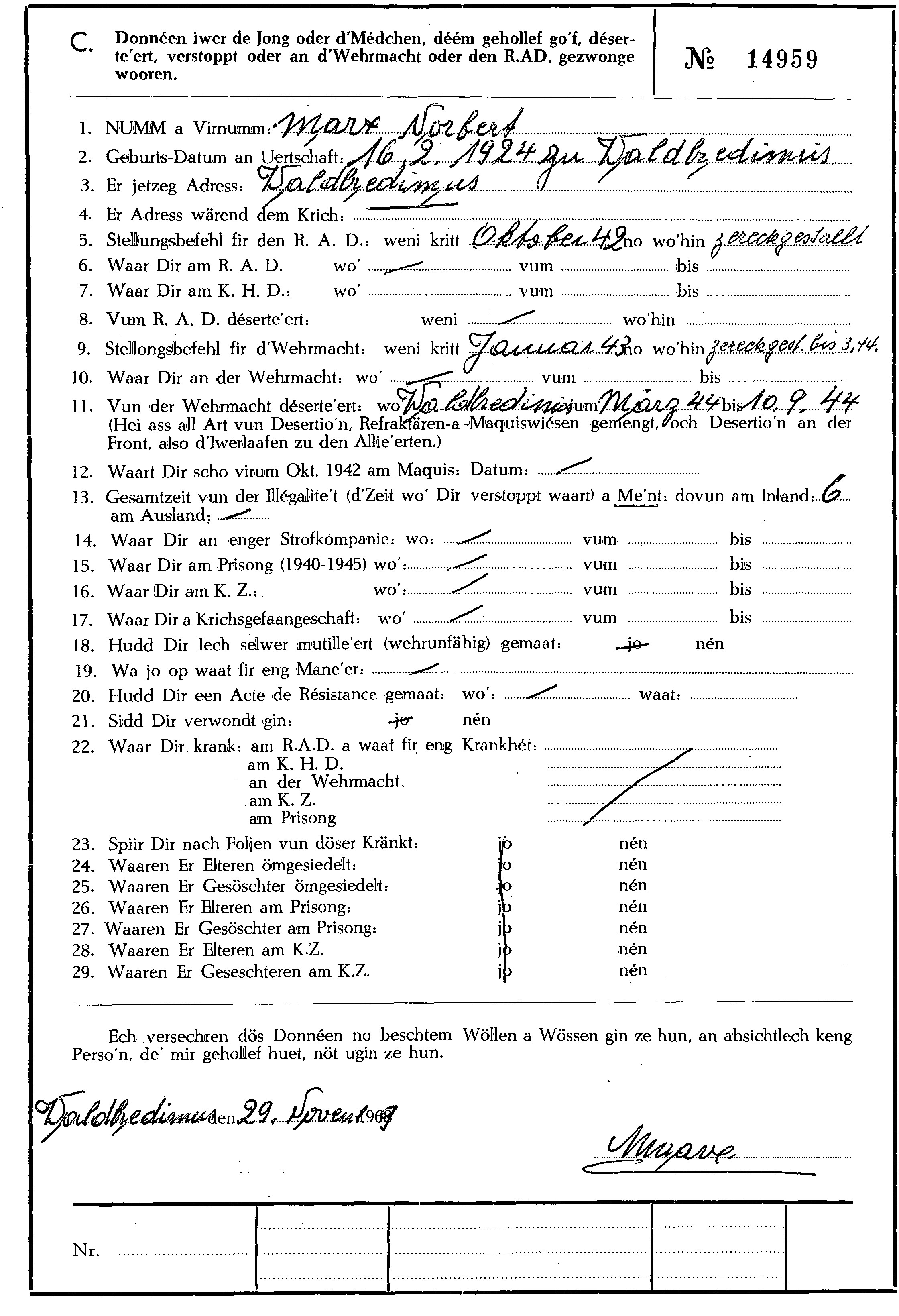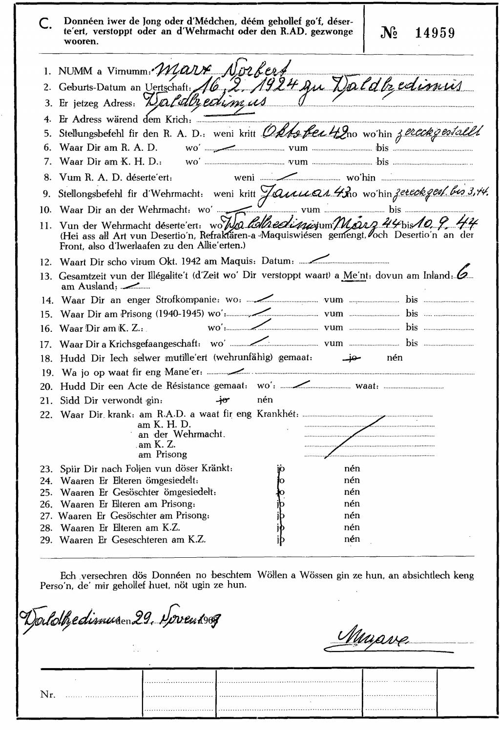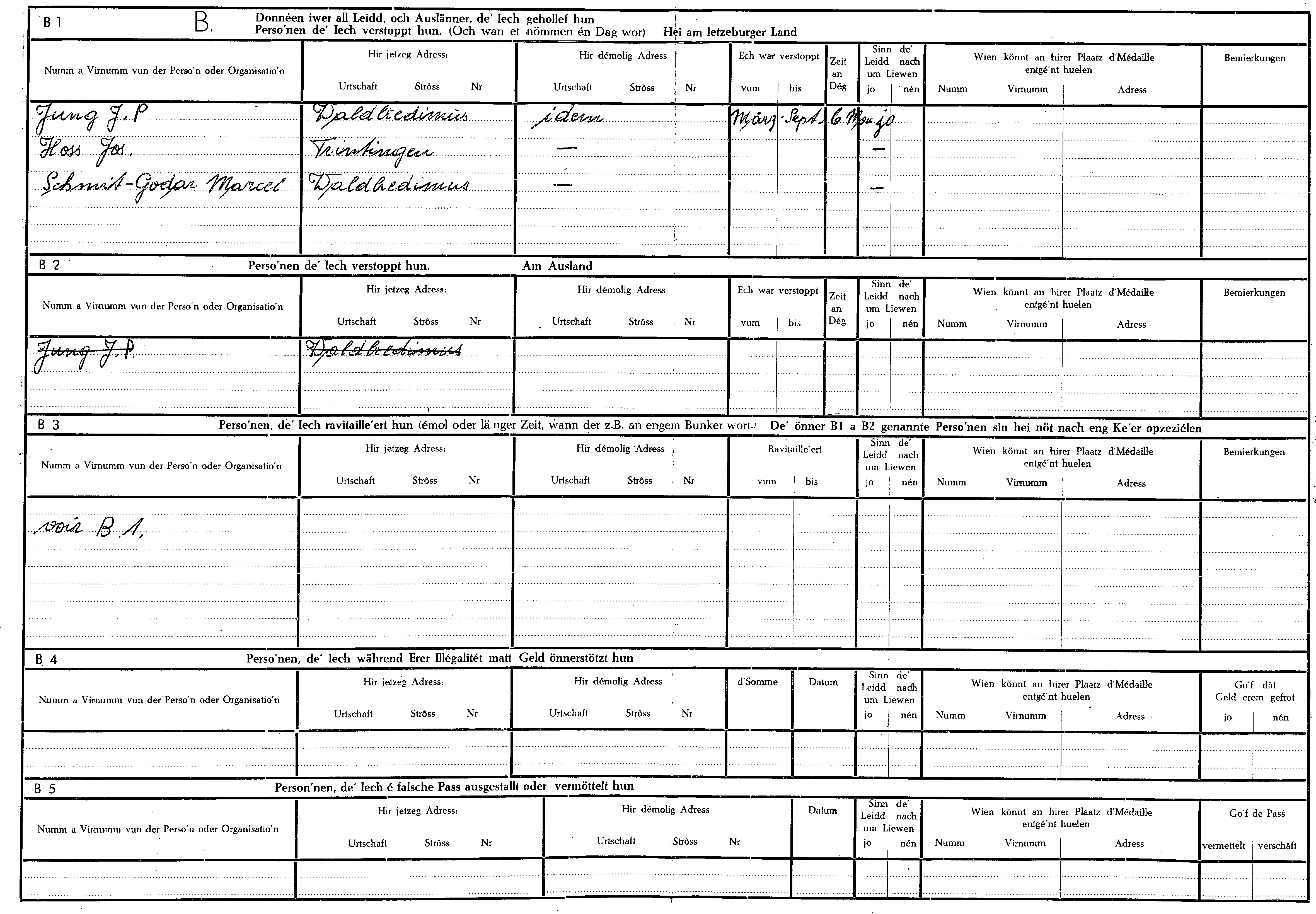 Nom, prénom, nom pendant l'occupation