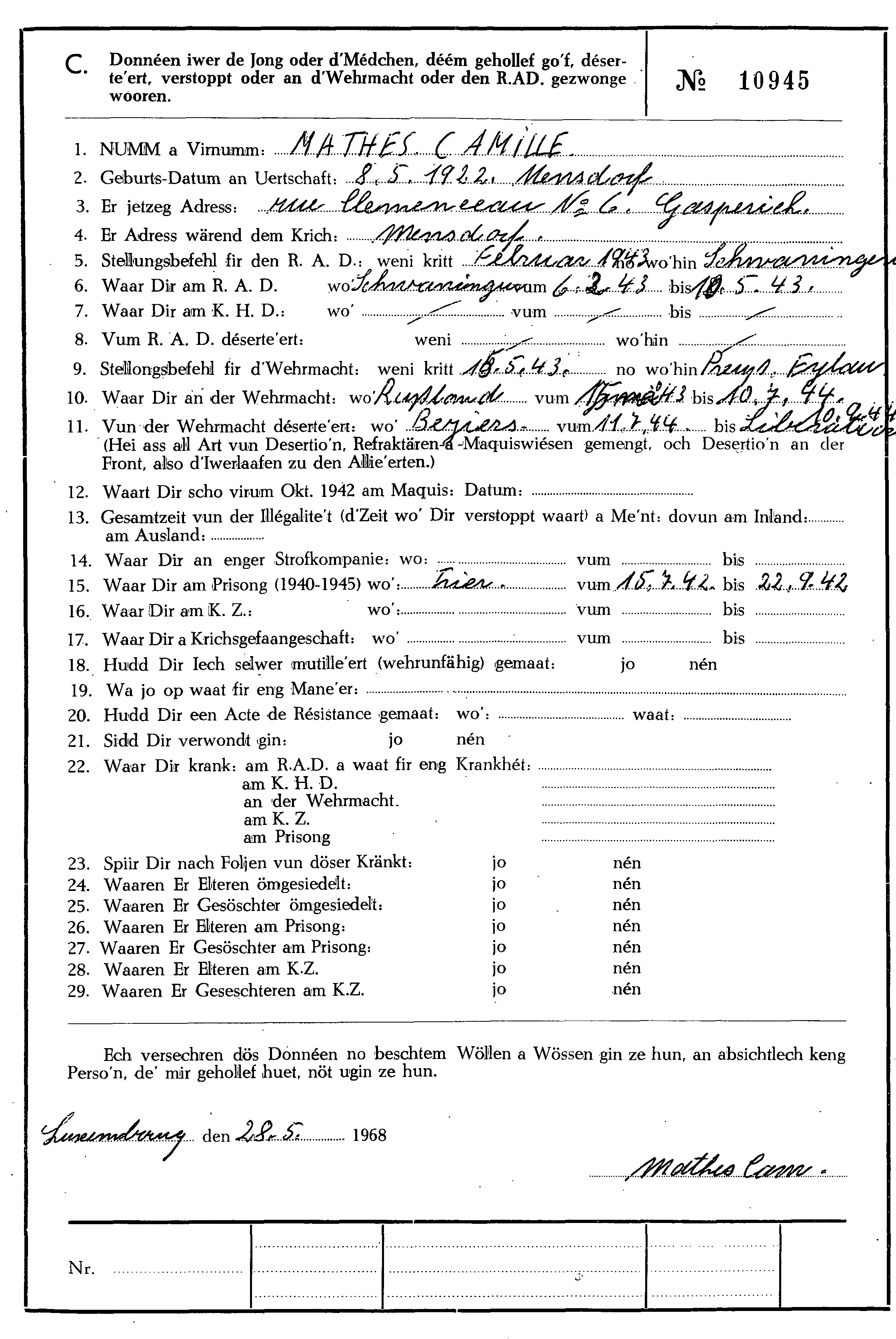 Nom, prénom, nom pendant l'occupation