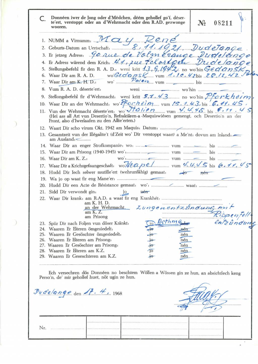 Nom, prénom, nom pendant l'occupation