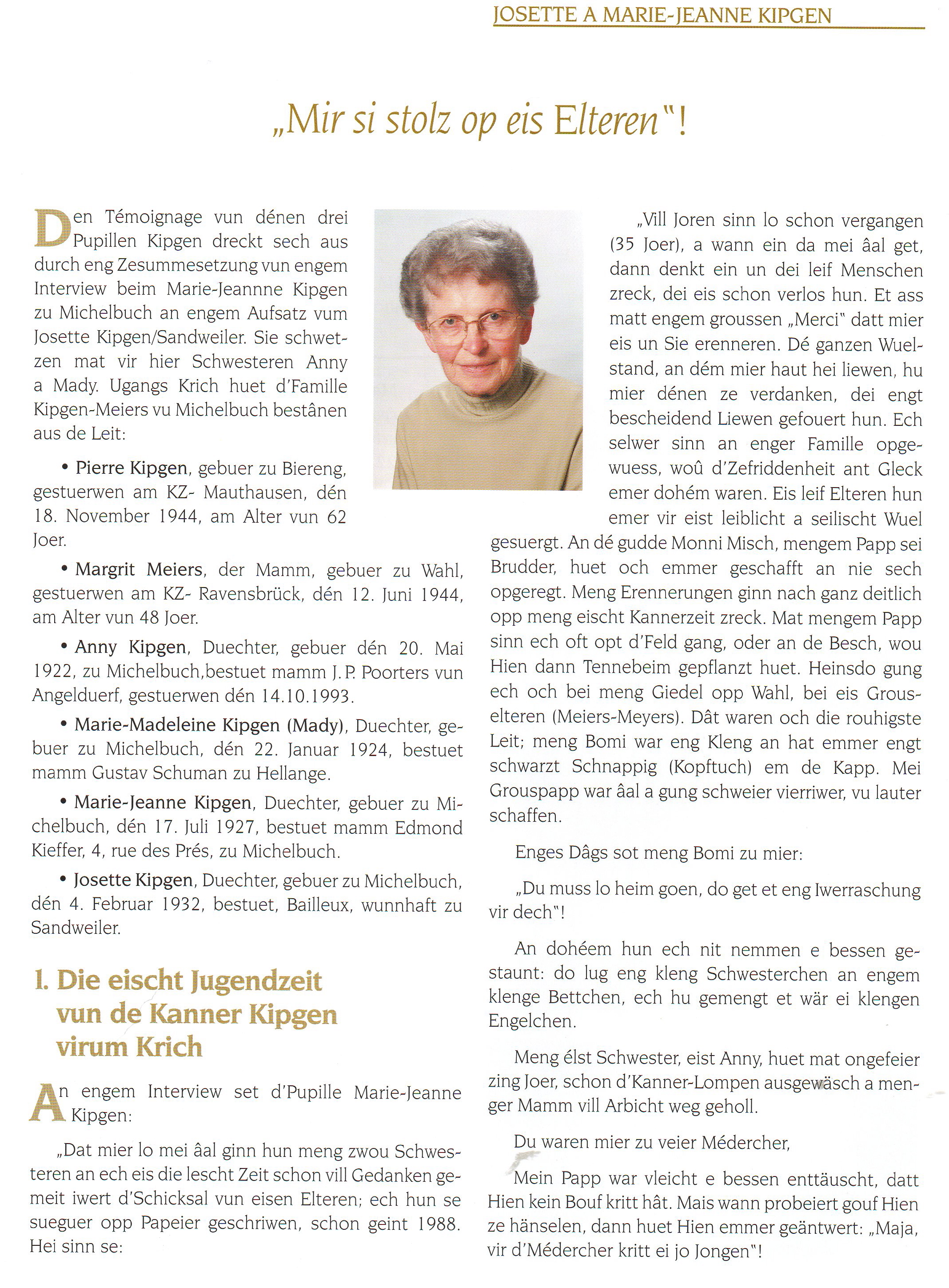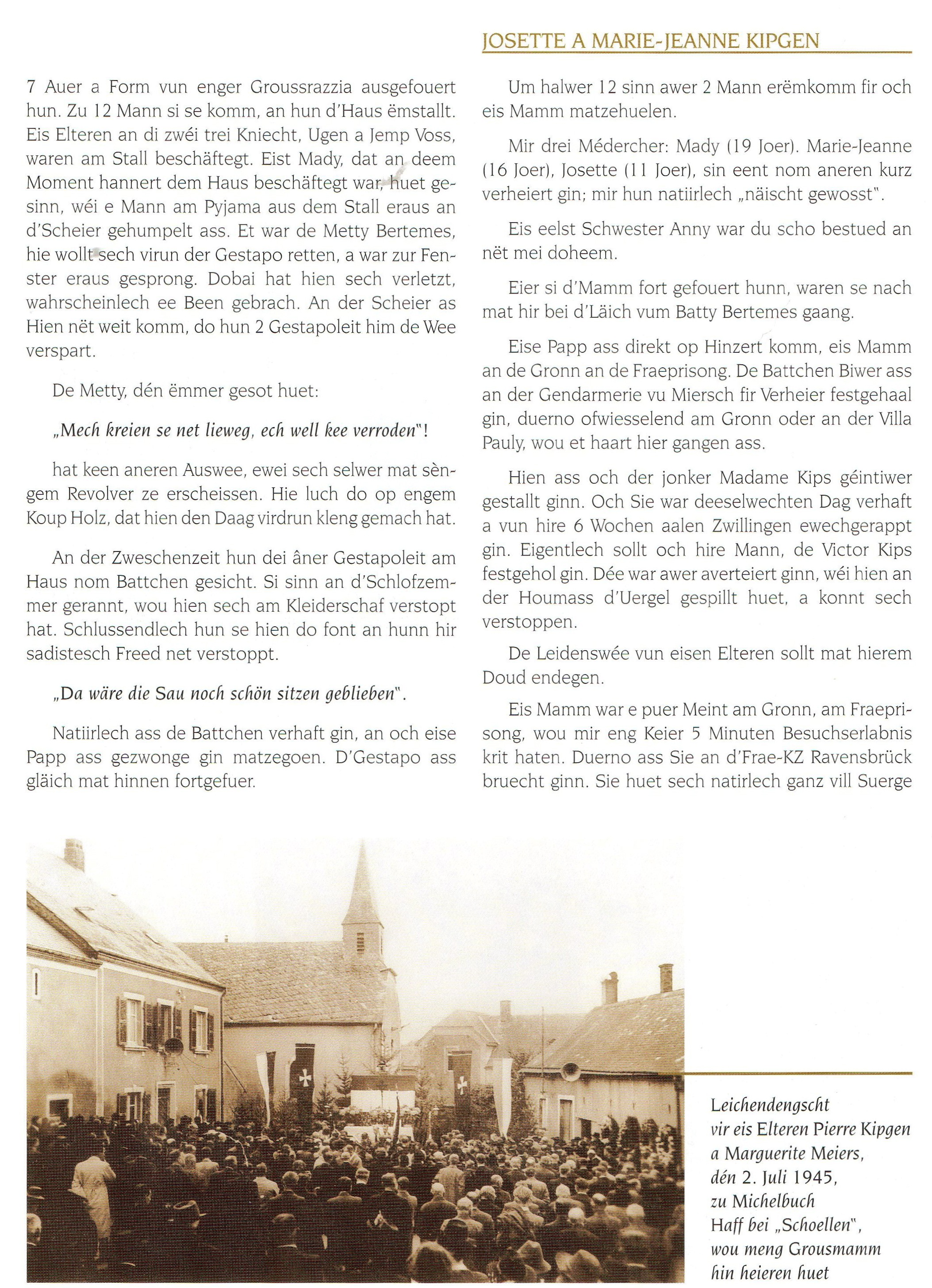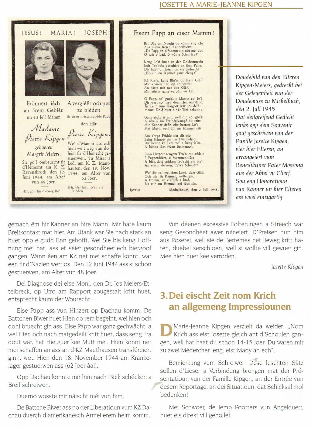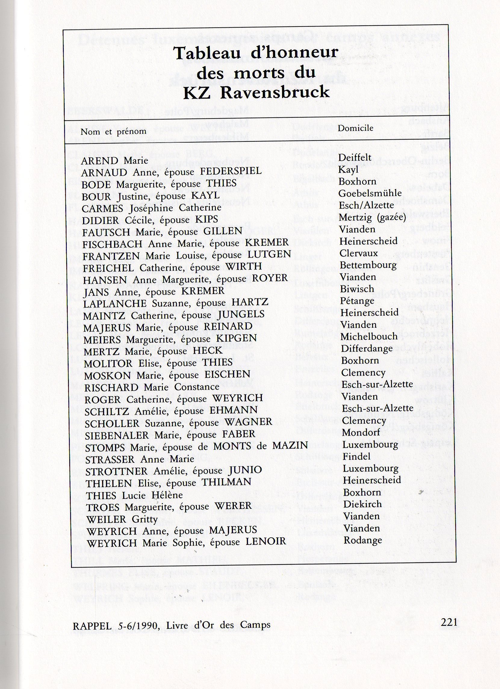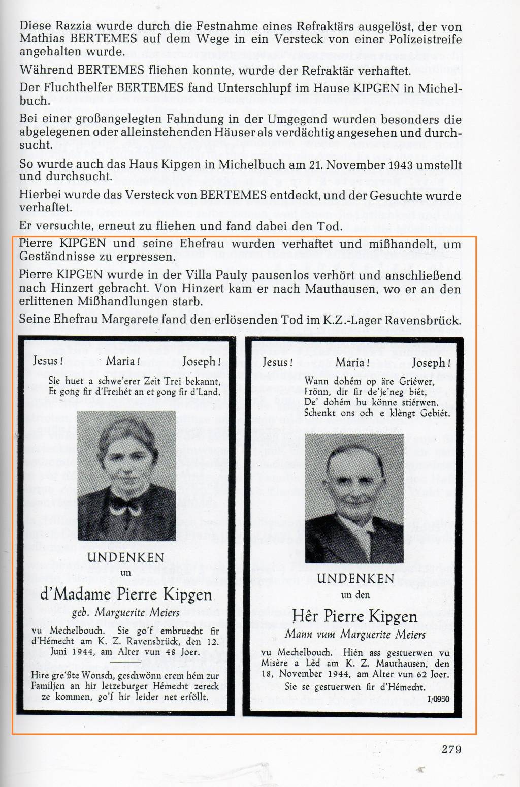 Meiers Marguerite ep. Kipgen Pierre Mechlbouch 12061944 KZ Ravensbruck KREMER Nicolas Aus dunkler Zeit 1993