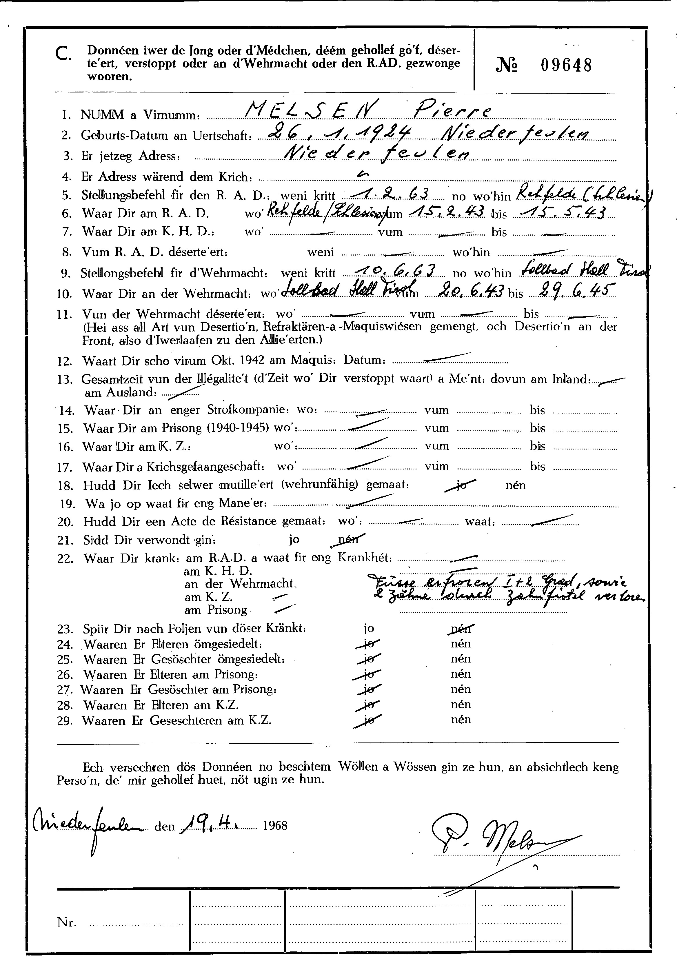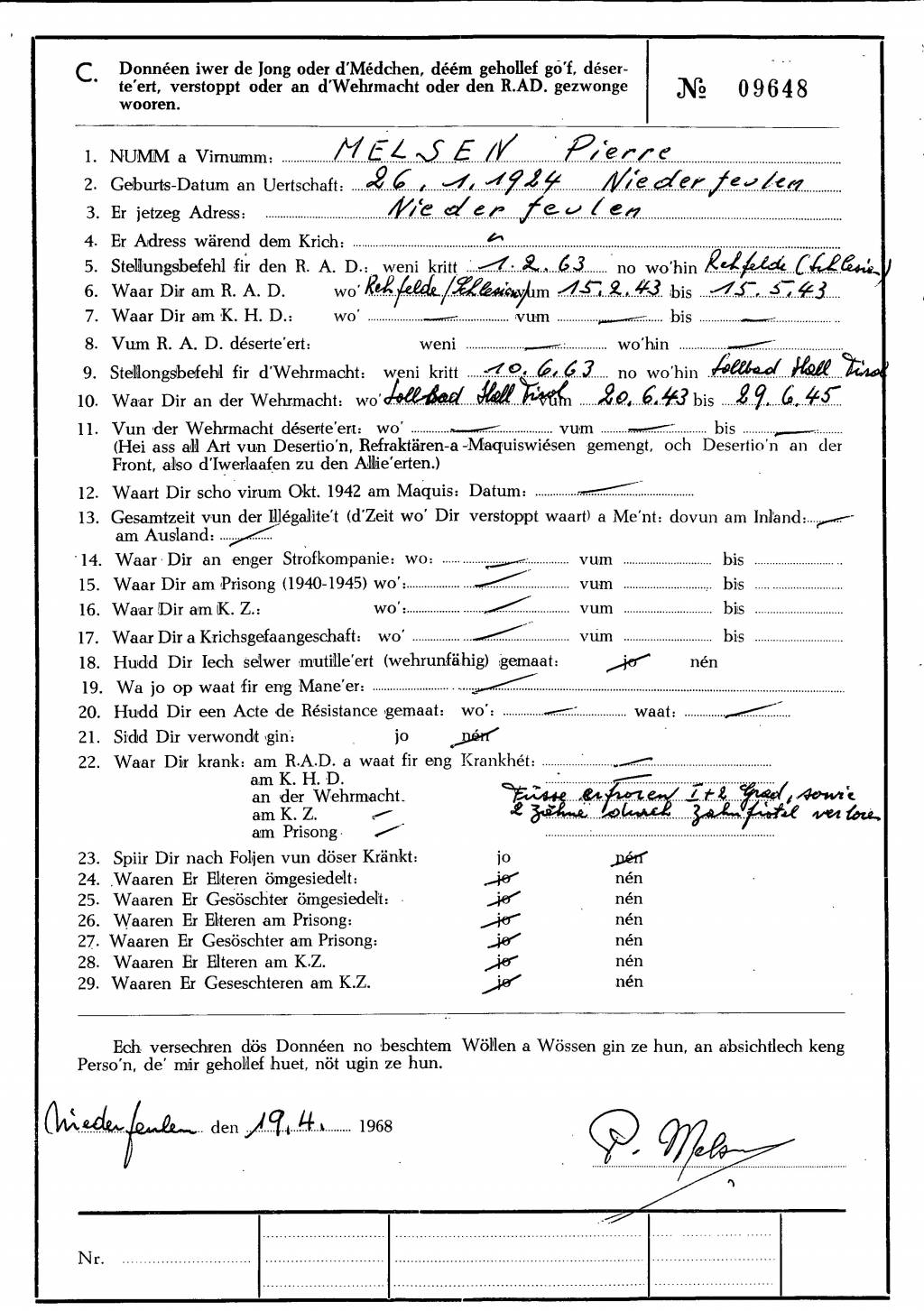 Divers Melsen Pierre_26011924_Niederfeulen_09112010.jpg Télécharger le document Melsen Pierre.jpeg Télécharger le document MELSEN Pierre 26011924 Niederfeulen 1.jpg Télécharger le document 2.jpg Télécharger le document 3.jpg Télécharger le document