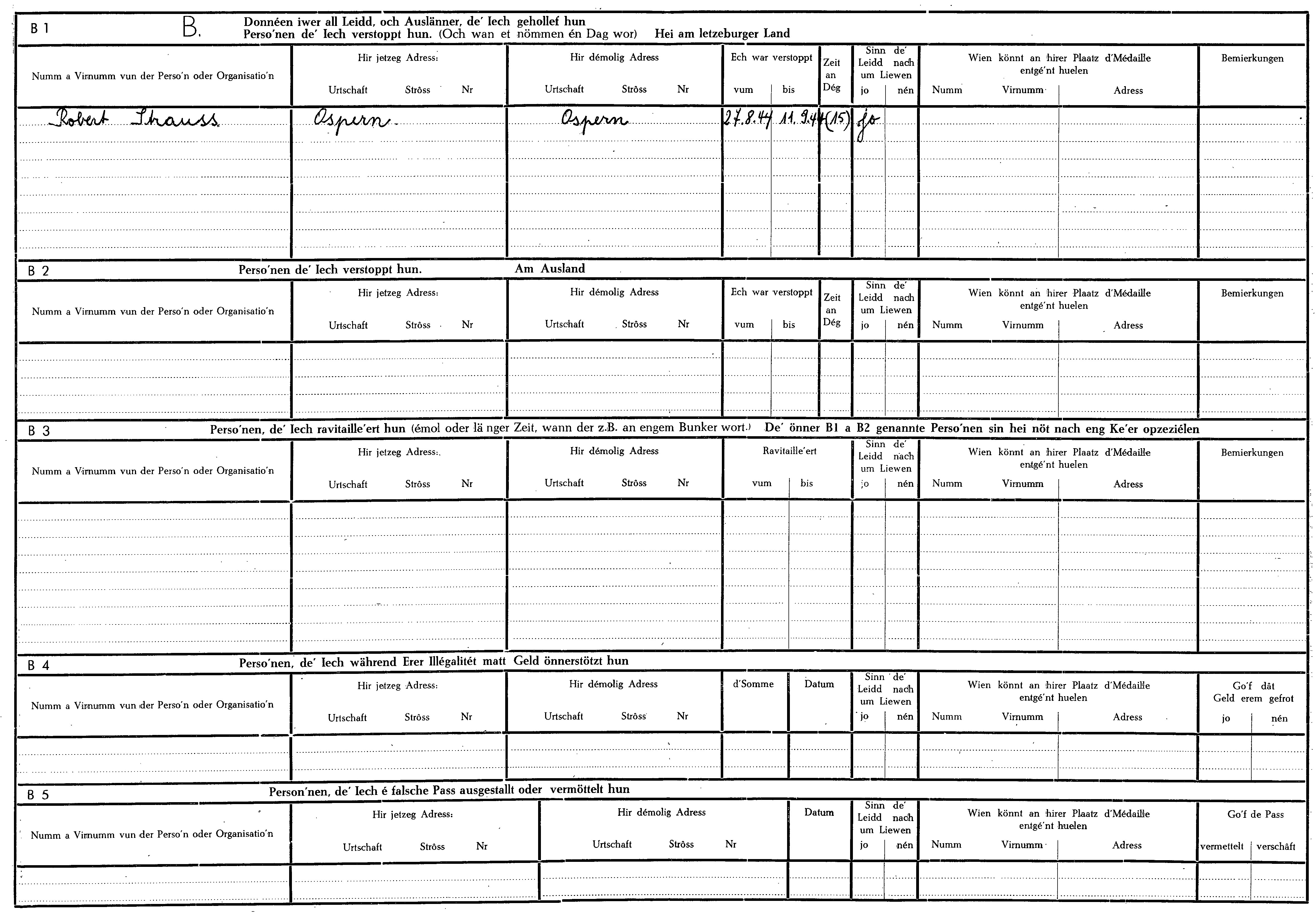 Nom, prénom, nom pendant l'occupation